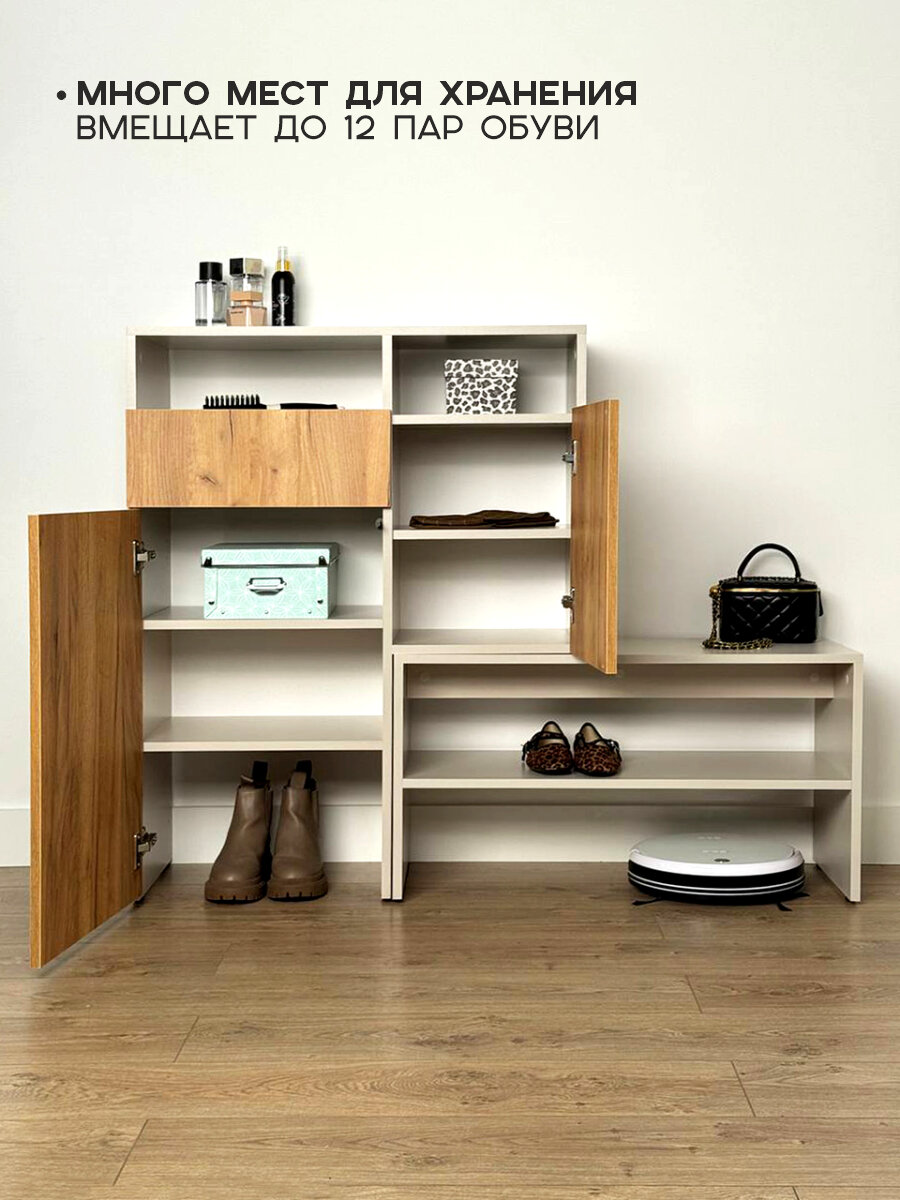 Тумба — обувница напольная с полками «Либерти», ЛДСП Кашемир/дуб крафт золотой, 125*35*102 см, MEBELSON: сравнение цен, характеристики, фото, актуальное наличие и цены.