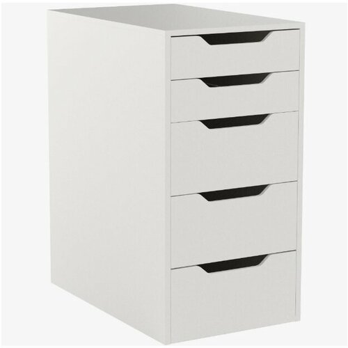 Тумба изготовлена из ДСП, что обеспечивает прочность и долговечность. В комплекте 5 выдвижных ящиков с качественными телескопическими направляющими для удобства использования. Поверхность окрашена экологически безопасными материалами и гарантирует сохранение внешнего вида на протяжении длительного времени.