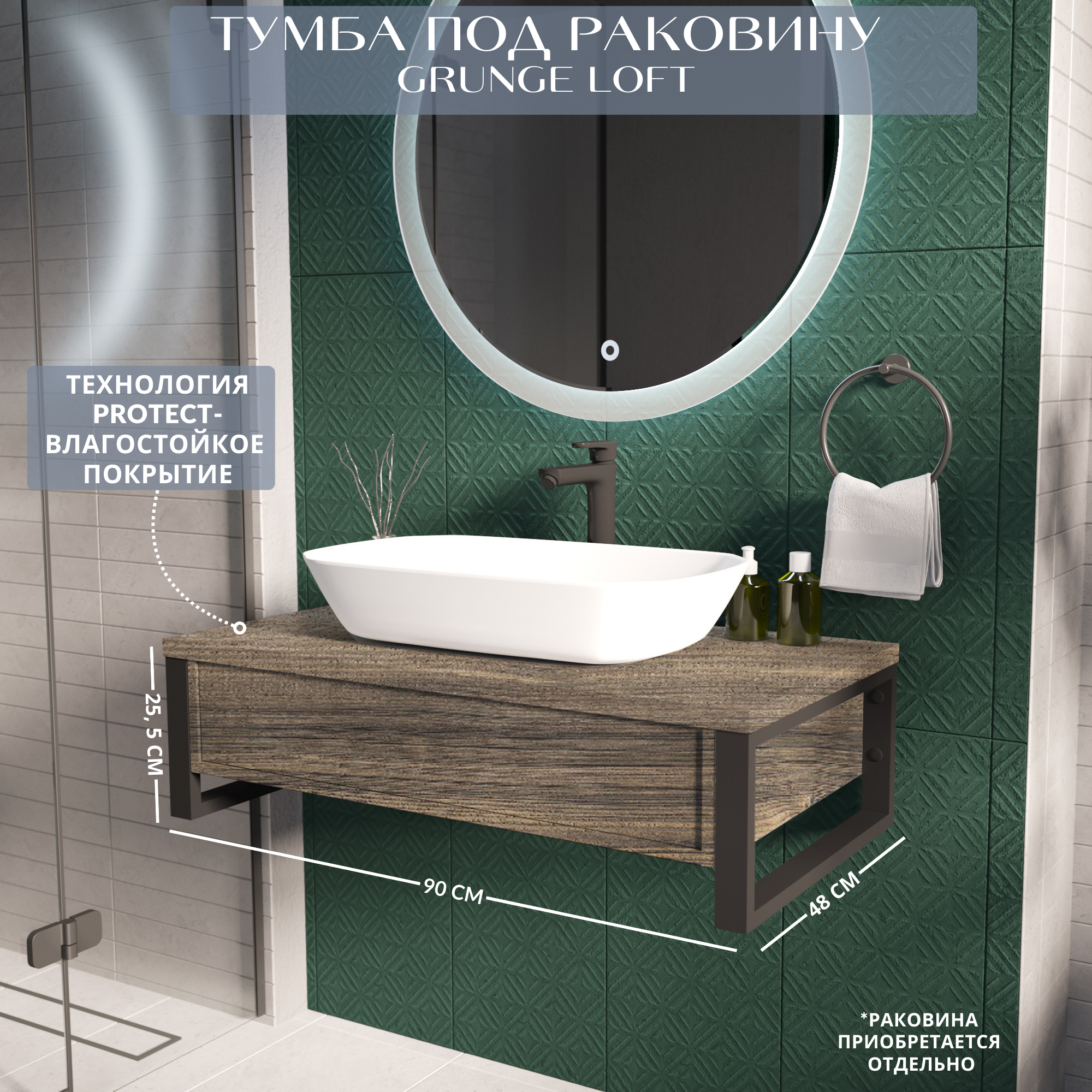 Купить Тумба под раковину 1Marka GRUNGE LOFT 90 см Подвесная Дуб Намибия У85846 с доставкой по всей России.