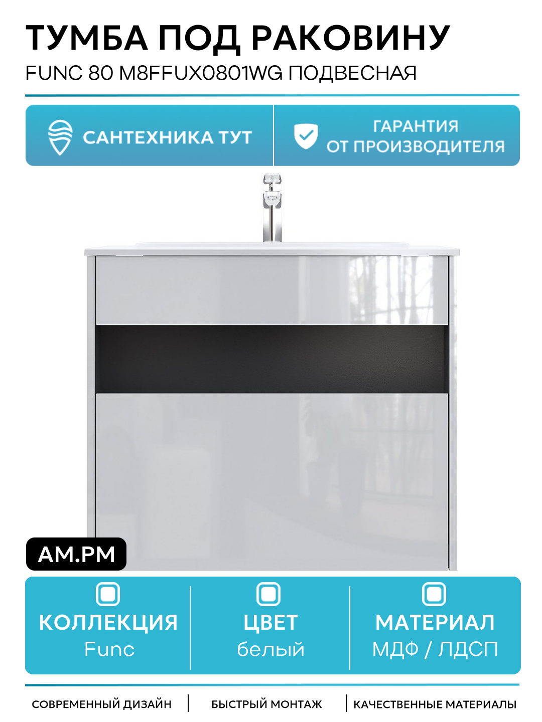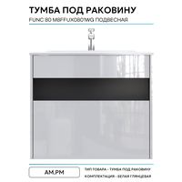 Тумба под раковину AM.PM Func 80 M8FFUX0801WG подвесная Белая глянцевая МДФ/ЛДСП белый с ящиками, с открытыми полками: сравнение цен, характеристики, фото, актуальное наличие и цены.
