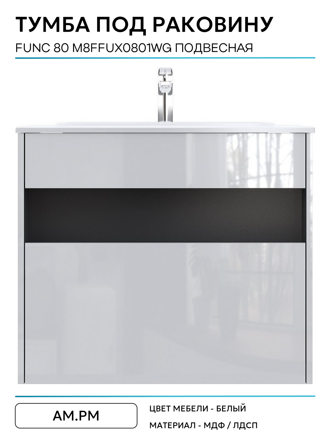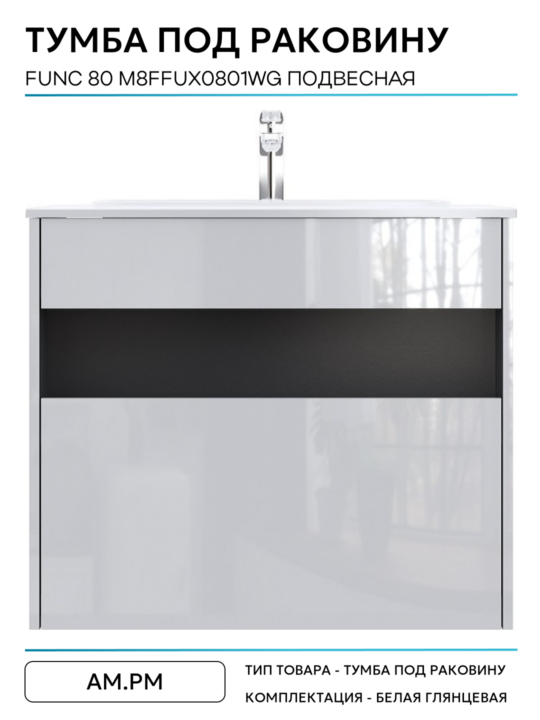 Купить Тумба под раковину AM.PM Func 80 M8FFUX0801WG подвесная Белая глянцевая МДФ/ЛДСП белый с ящиками, с открытыми полками с доставкой по всей России.