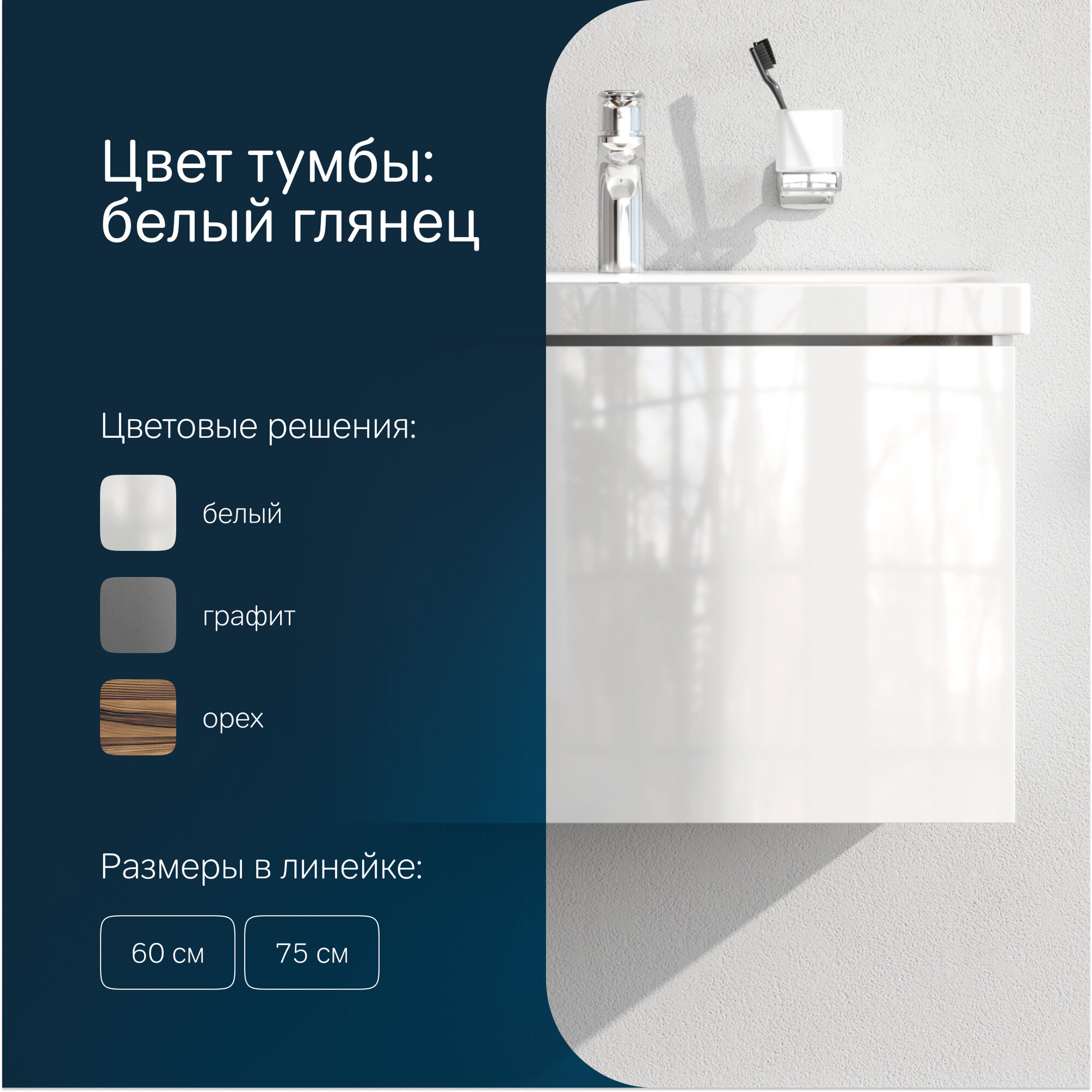 Тумба под раковину AM.PM Gem 60 см, подвесная, 1 ящик push-to-open, белый глянец: сравнение цен, характеристики, фото, актуальное наличие и цены.