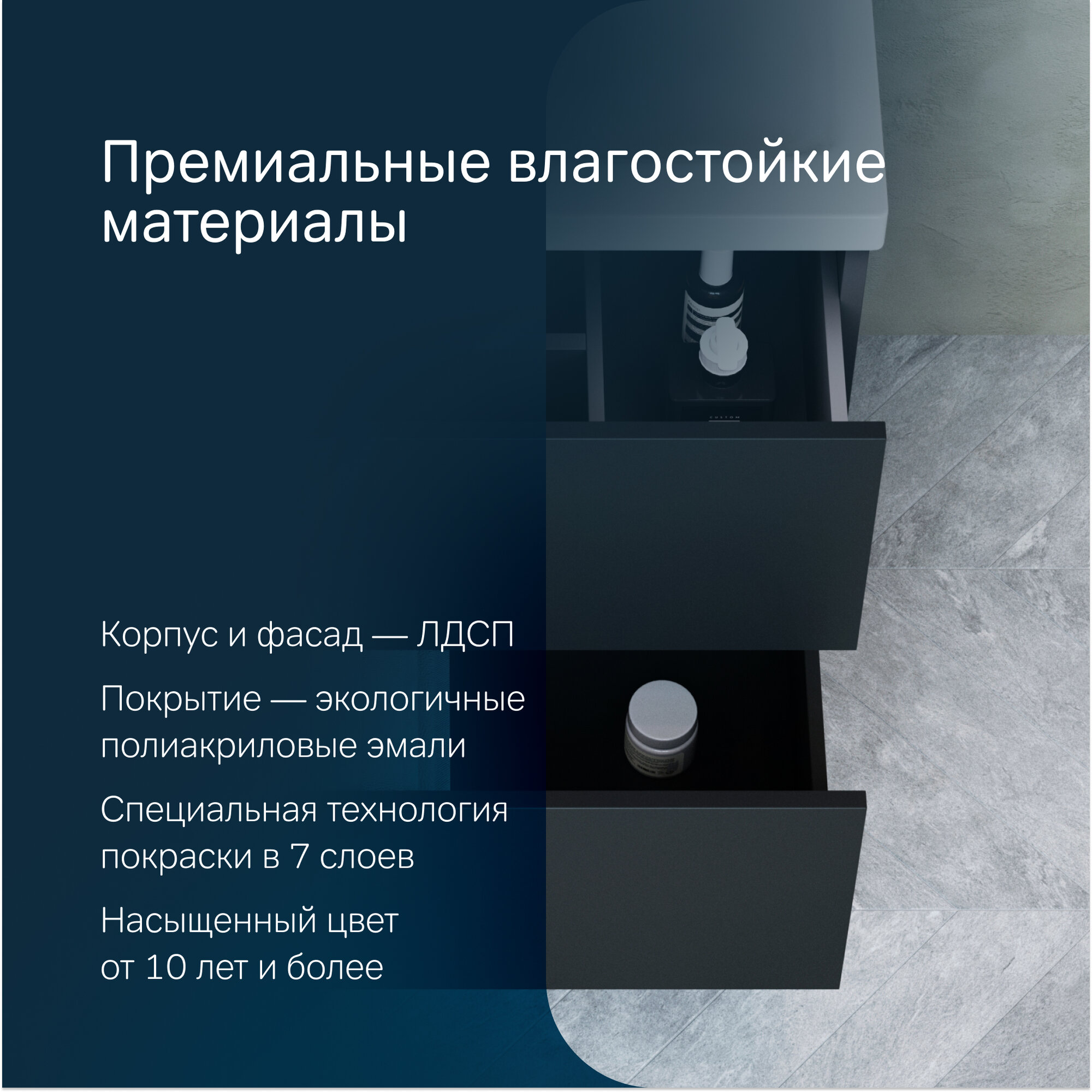 нижний ящик базы может быть использован как выдвижная подставка для детей; ящики с антискользящим покрытием цвета антрацит; регулируемые ножки-подпятники (до 10 см)