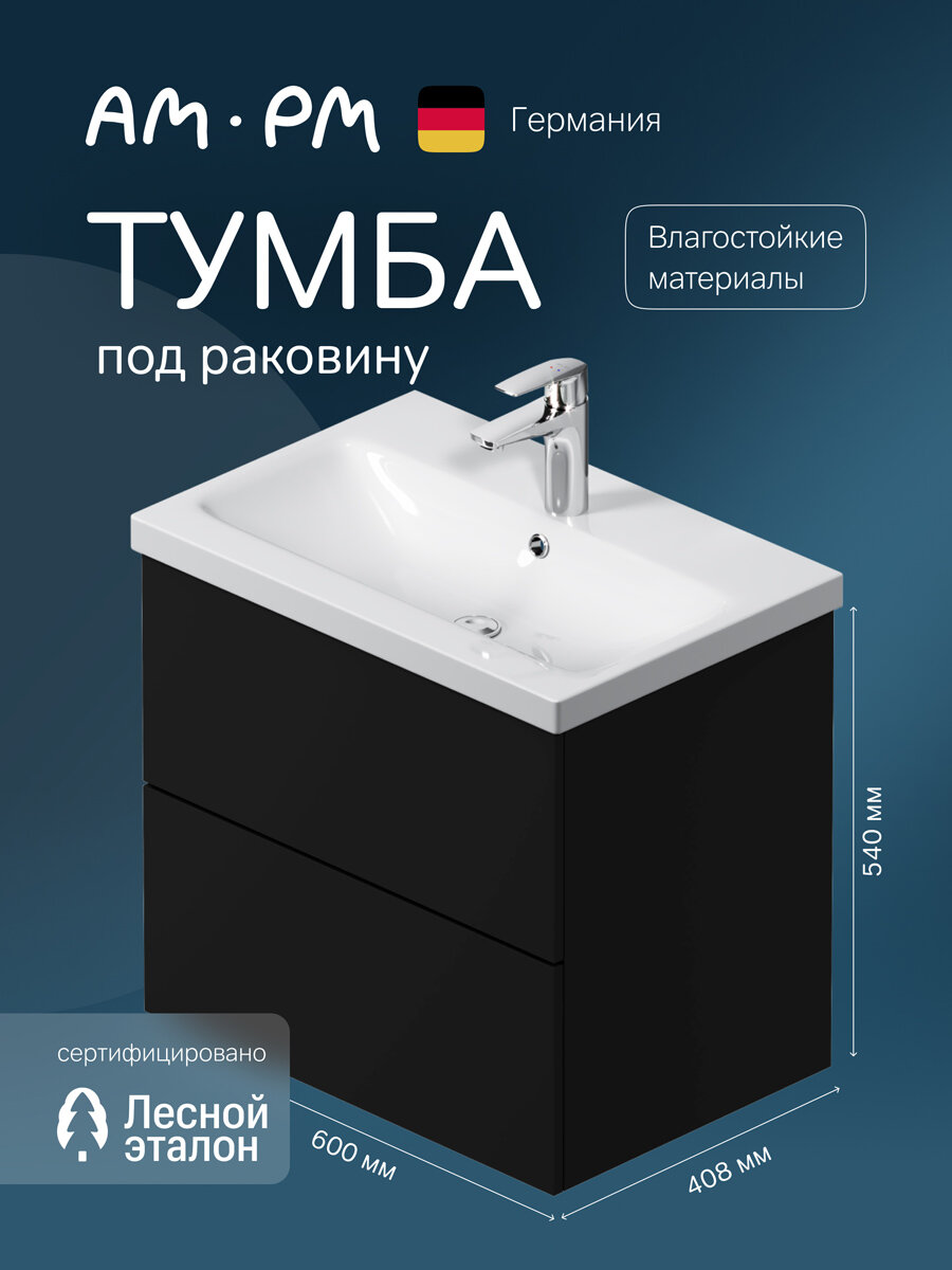 Купить Тумба под раковину AM.PM Gem подвесная 60 см, 2 ящика, черная матовая с доставкой по всей России. Тумба под раковину AM.PM Gem подвесная 60 см, 2 ящика, черная матовая: сравнение цен, характеристики, фото, актуальное наличие и цены.