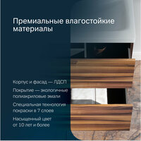 Фурнитура push-to-open - открытие ящика легким нажатием на фасад. Направляющие скрытого монтажа обеспечивают плавное выдвижение ящиков. Ширина тумбы под раковину - 75 см.