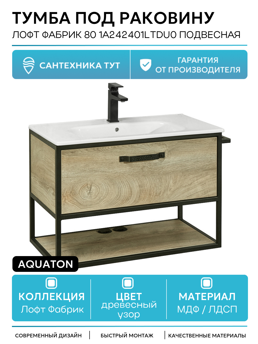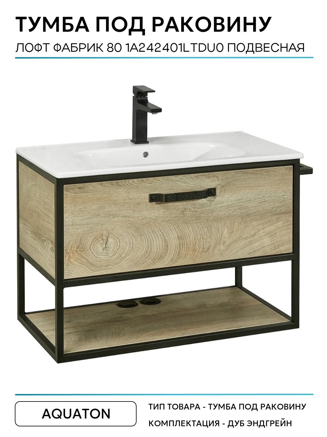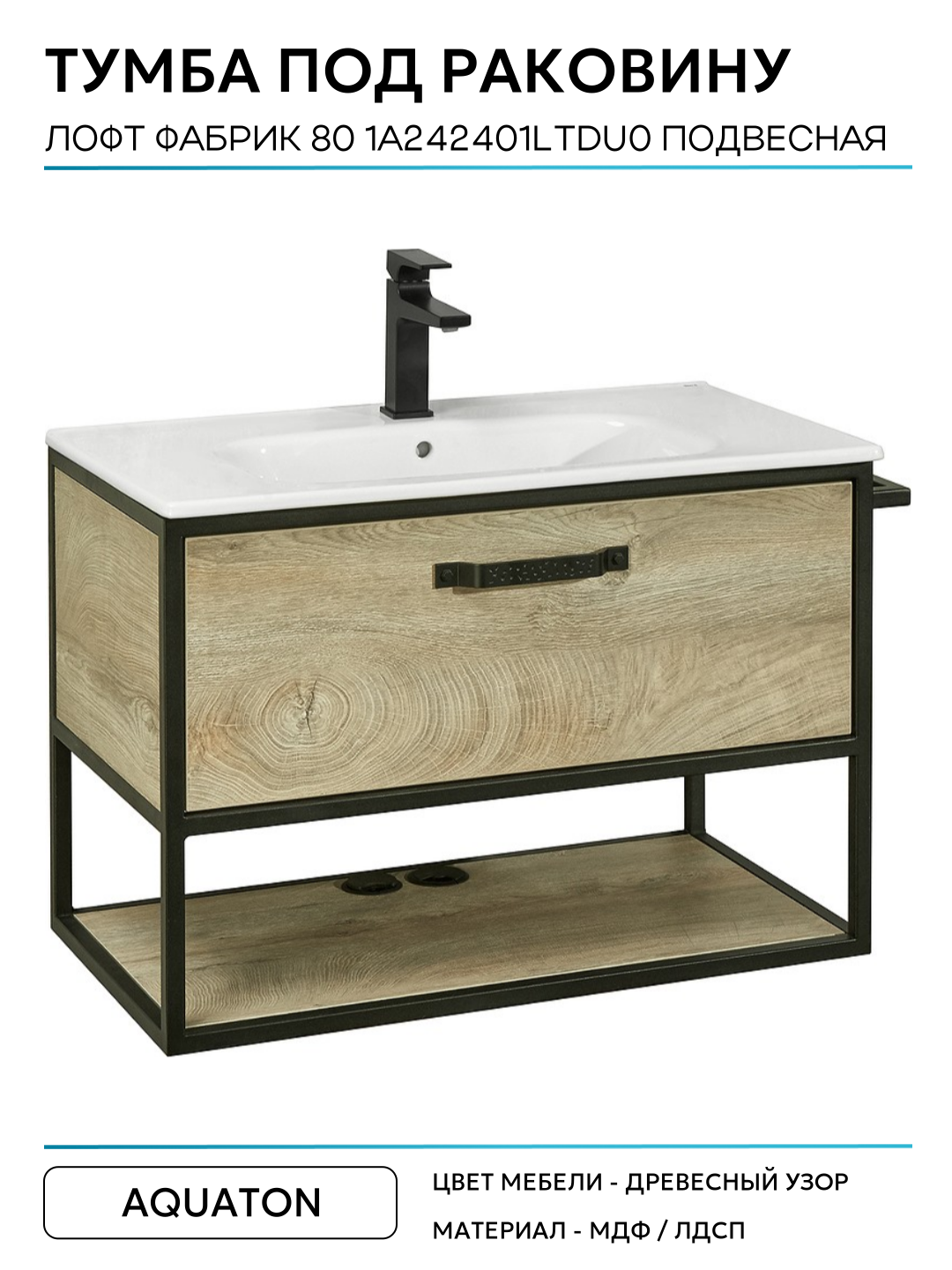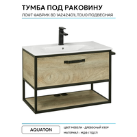 Купить Тумба под раковину Aquaton Лофт Фабрик 80 1A242401LTDU0 подвесная Дуб эндгрейн МДФ/ЛДСП с ящиками, с открытыми полками с доставкой по всей России.