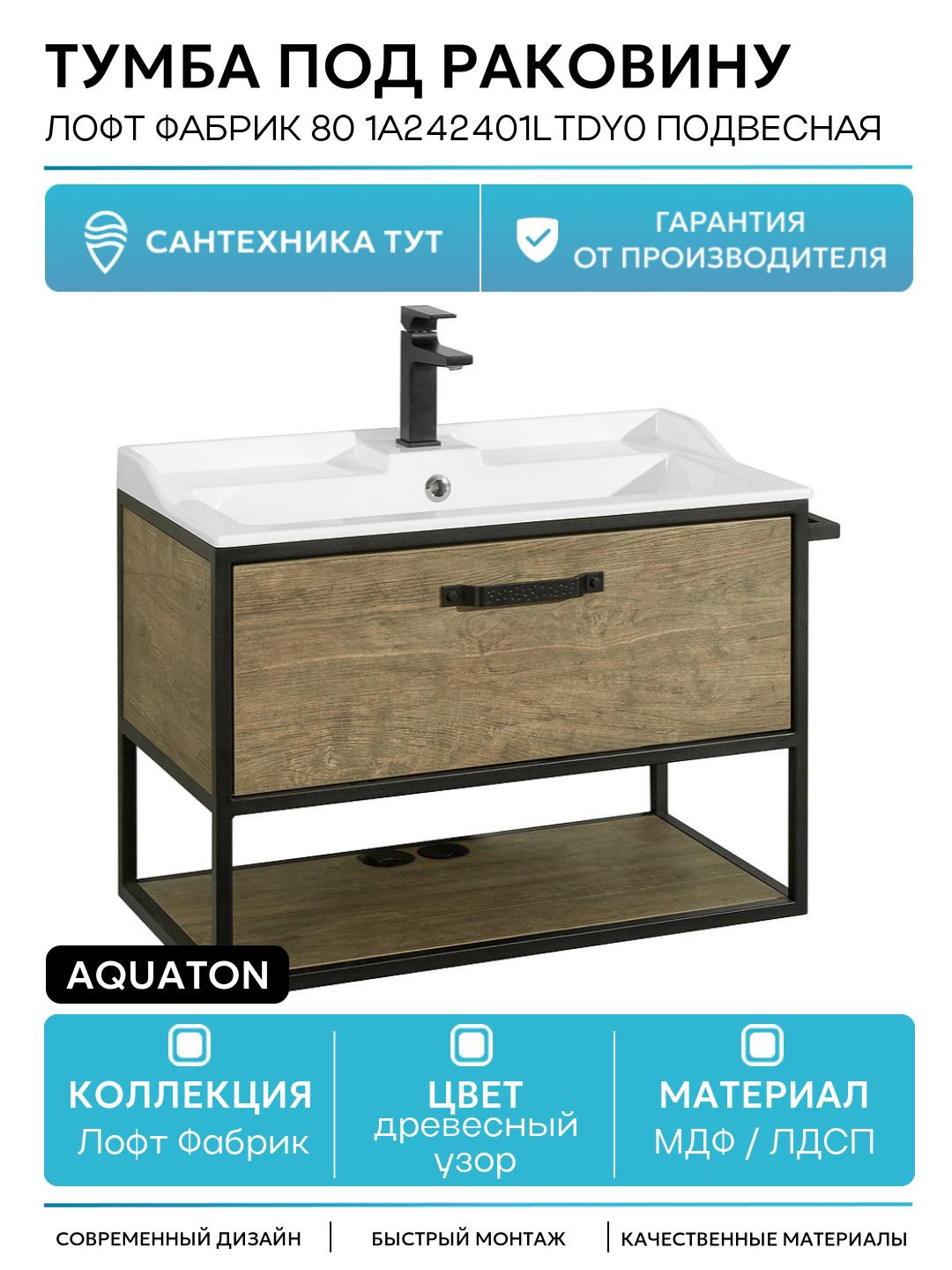 Тумба под раковину Aquaton «Лофт Фабрик», подвесная, ДСП/ЛДСП, МДФ, цвет дуб кантри: сравнение цен, характеристики, фото, актуальное наличие и цены.