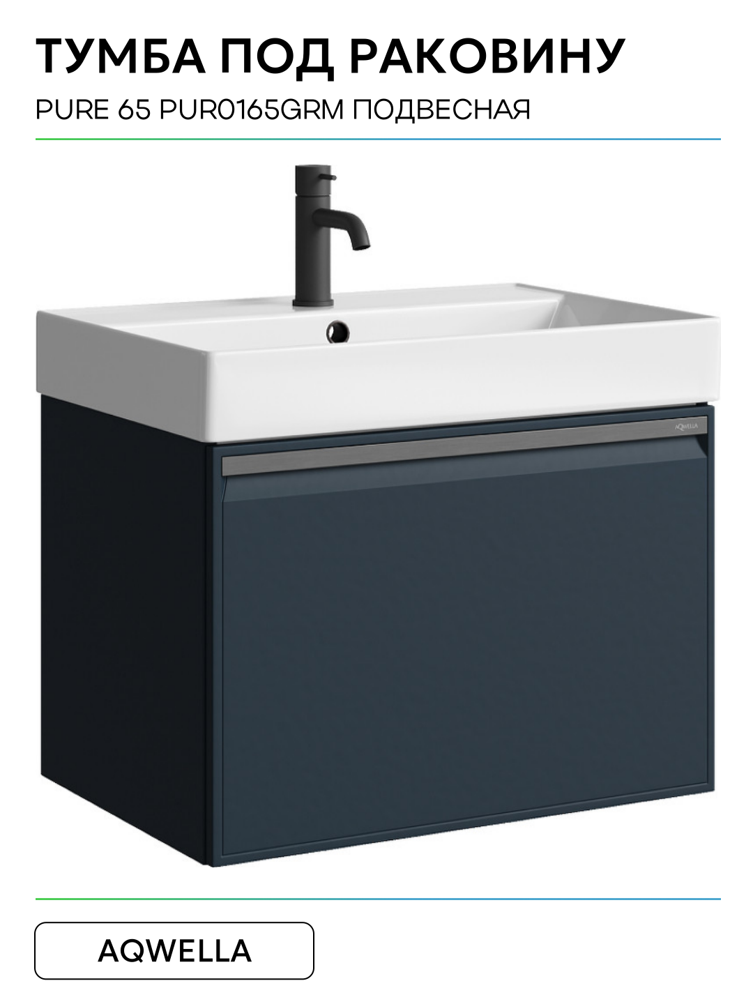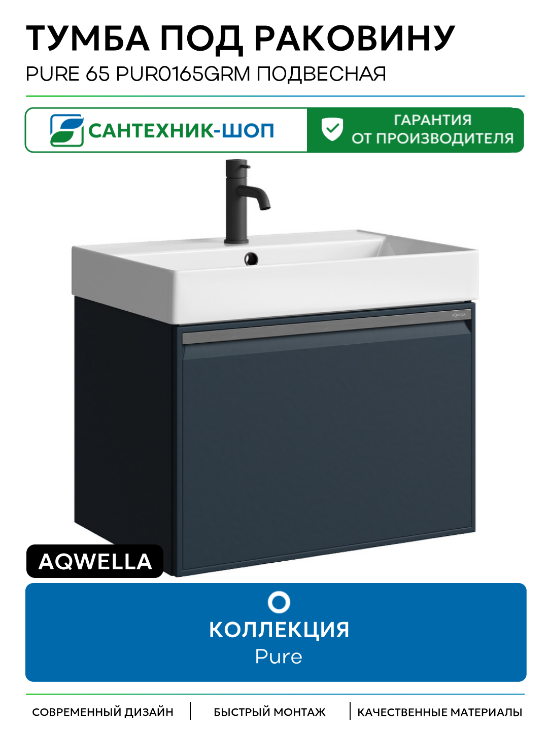 Тумба под раковину Aqwella Pure 65 PUR0165GRM подвесная Серая матовая Россия: сравнение цен, характеристики, фото, актуальное наличие и цены.