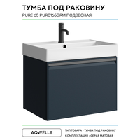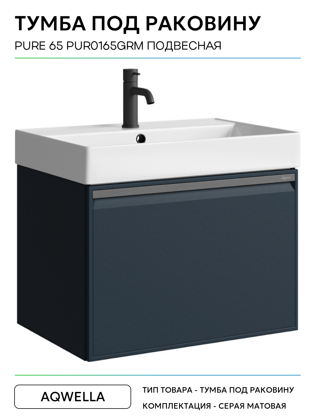 Купить Тумба под раковину Aqwella Pure 65 PUR0165GRM подвесная Серая матовая Россия с доставкой по всей России.