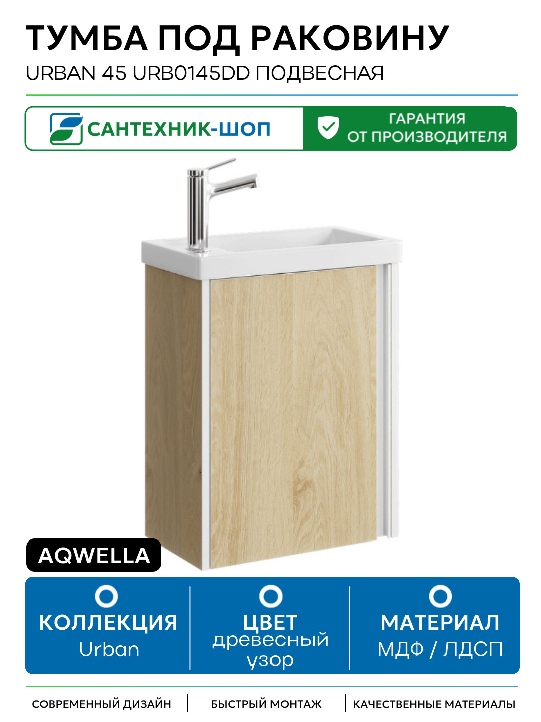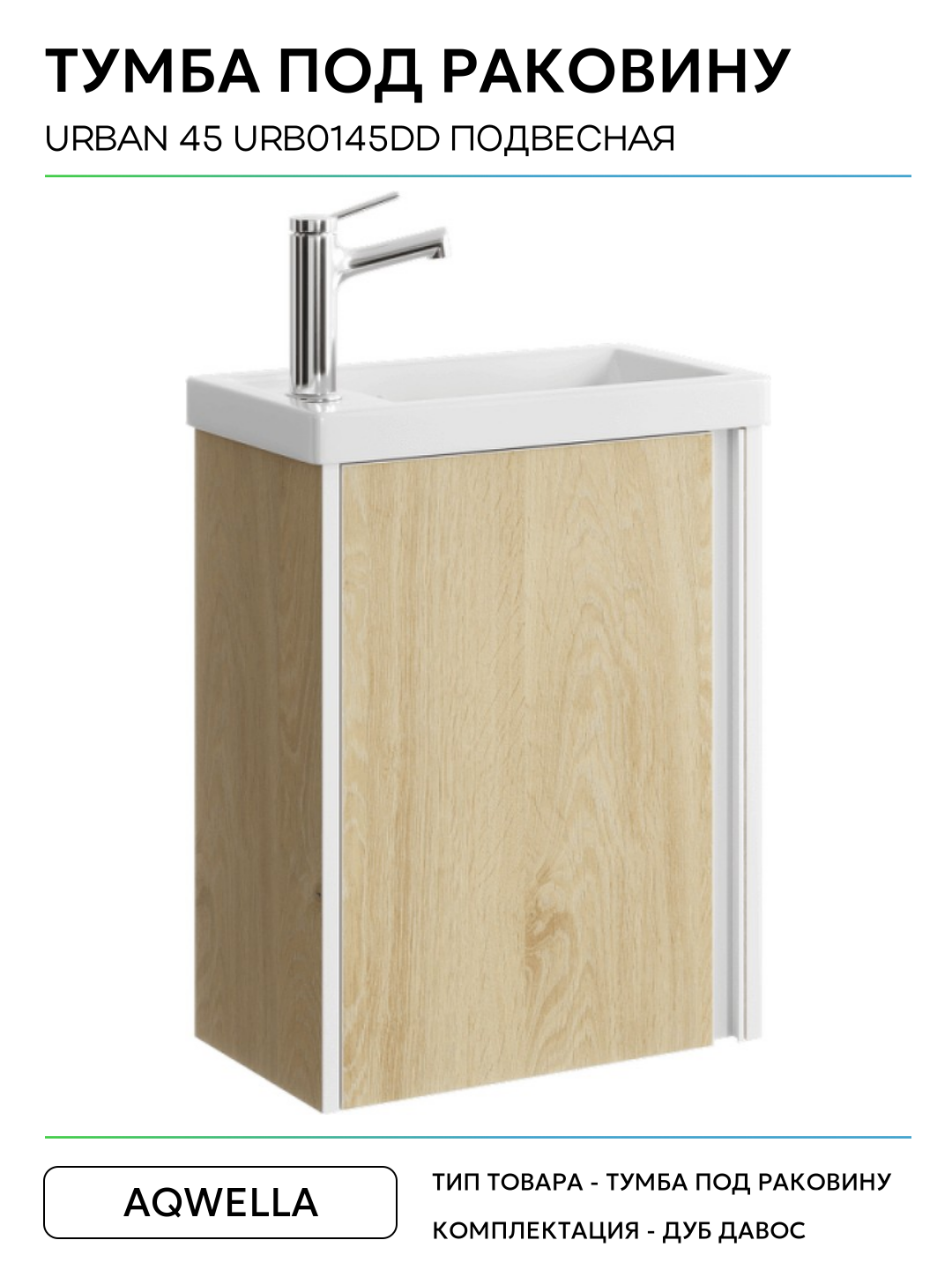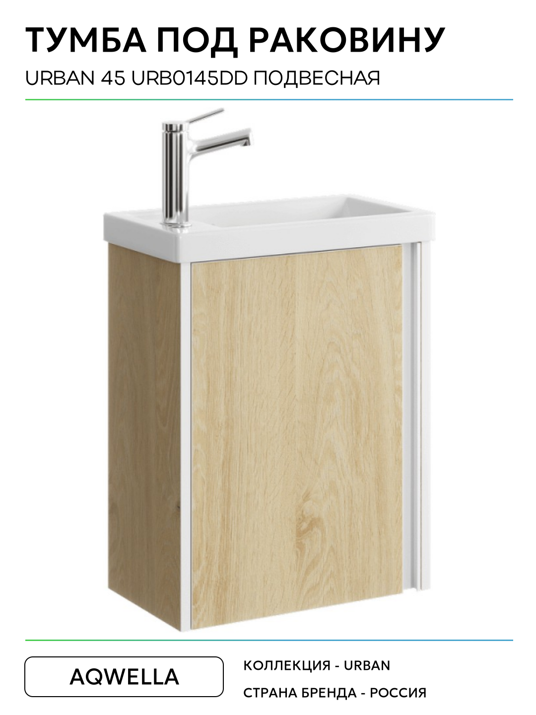 Тумба под раковину Aqwella Urban 45 URB0145DD подвесная Дуб Давос МДФ / ЛДСП древесный узор с дверками Россия: сравнение цен, характеристики, фото, актуальное наличие и цены.