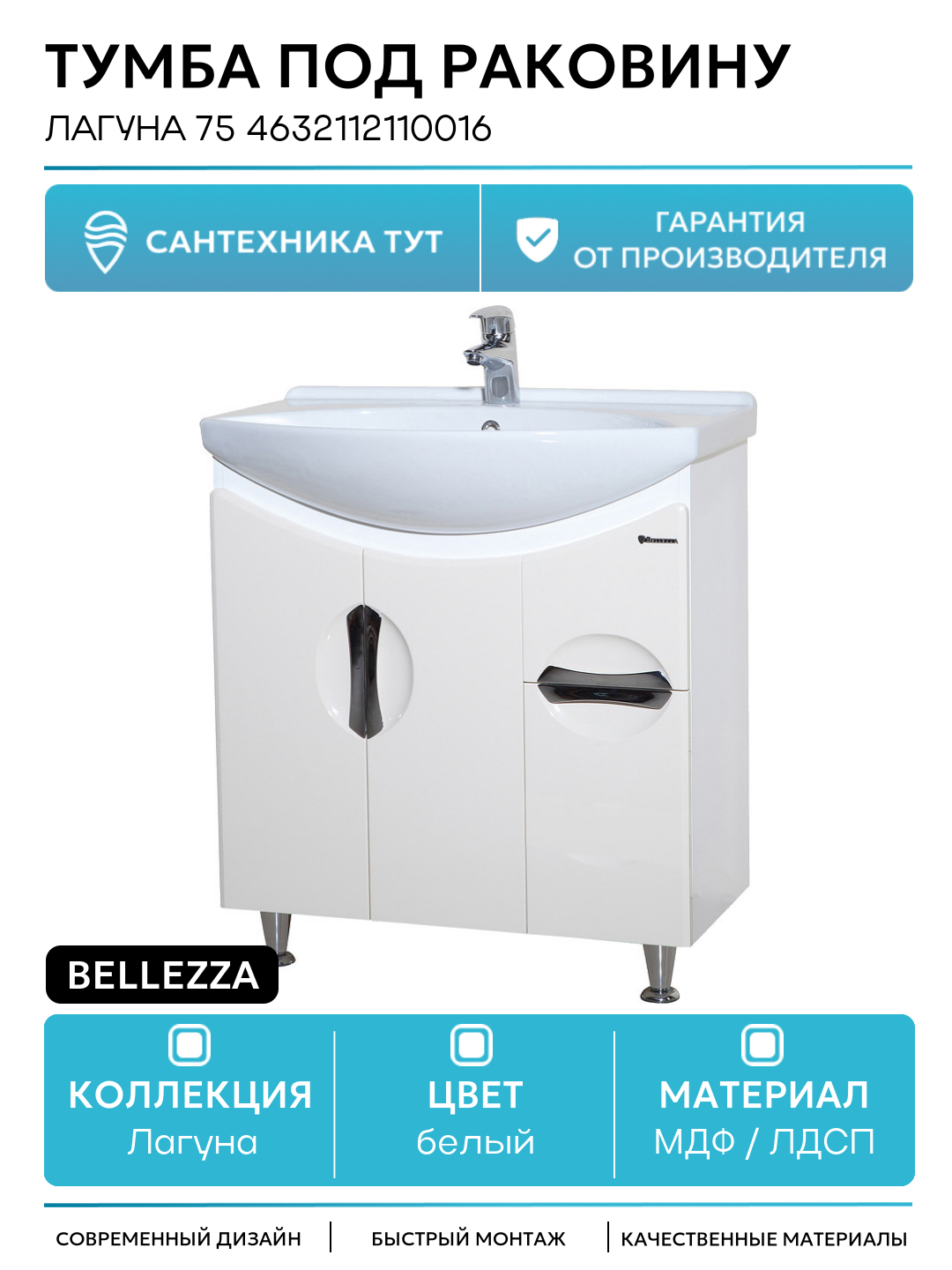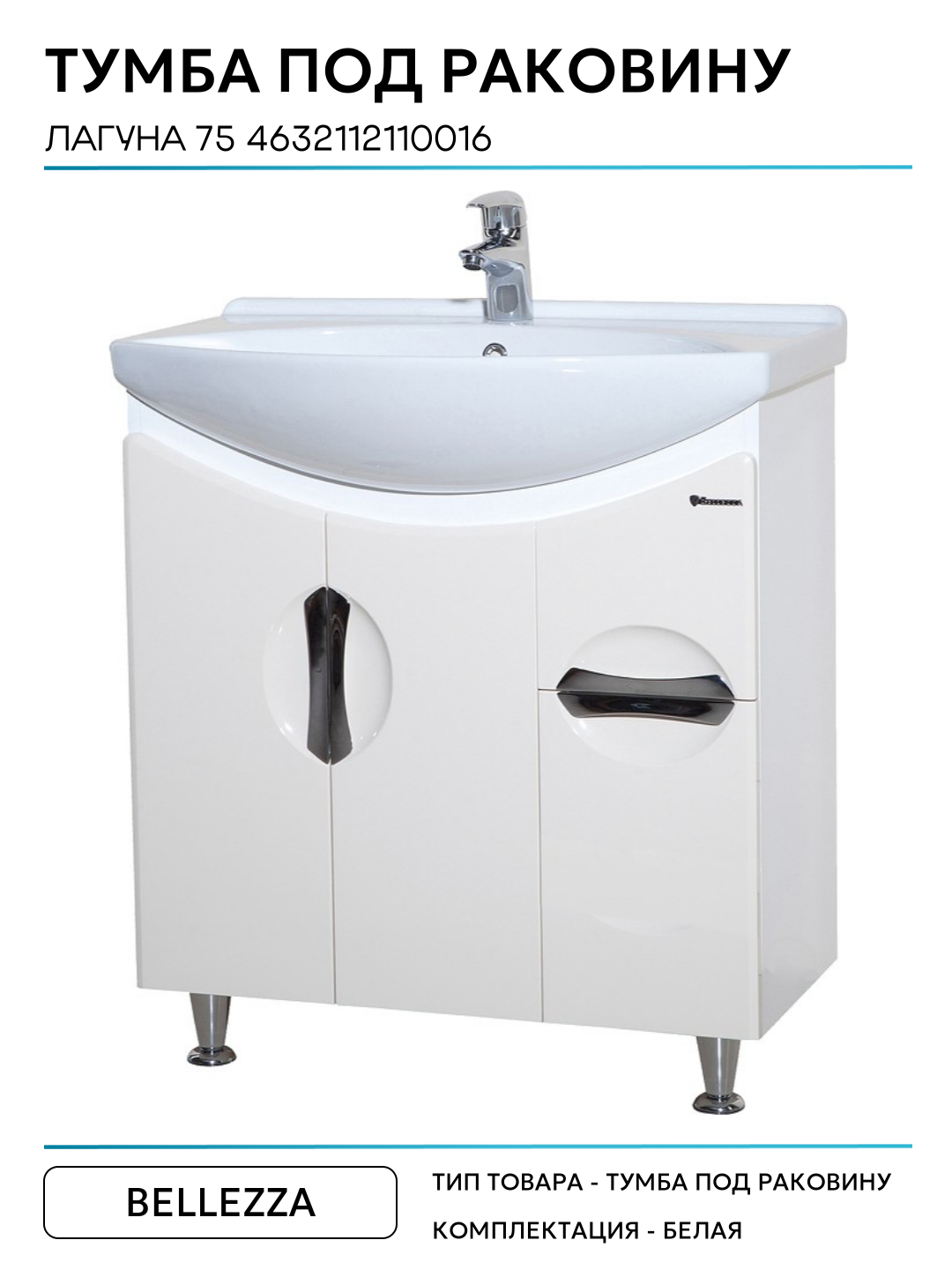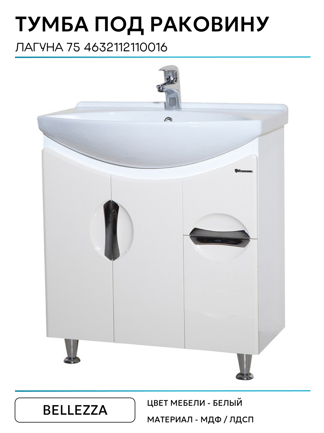 Тумба под раковину Bellezza Лагуна 75 4632112110016 Белая МДФ / ЛДСП белый с дверками, с ящиками: сравнение цен, характеристики, фото, актуальное наличие и цены.