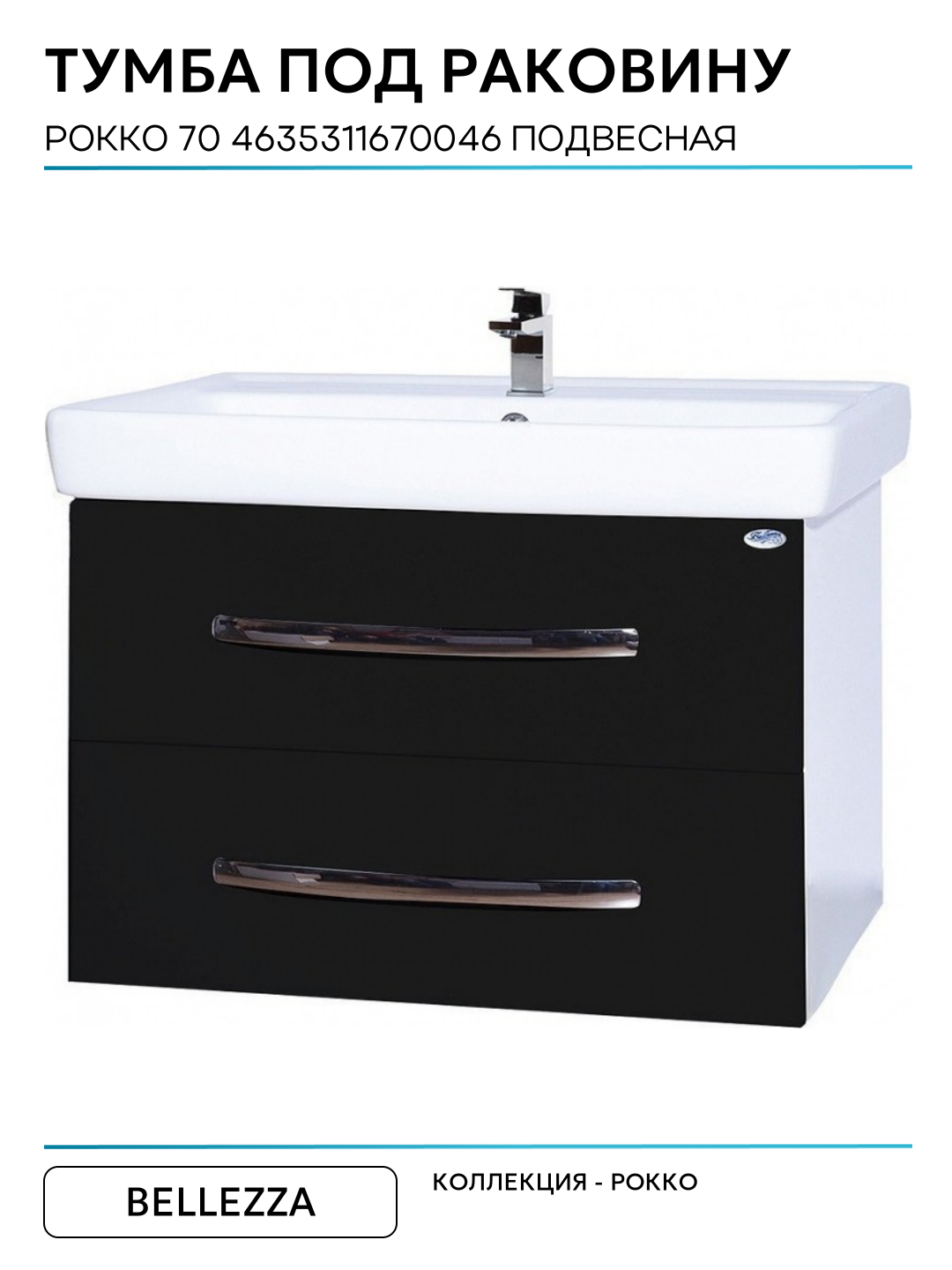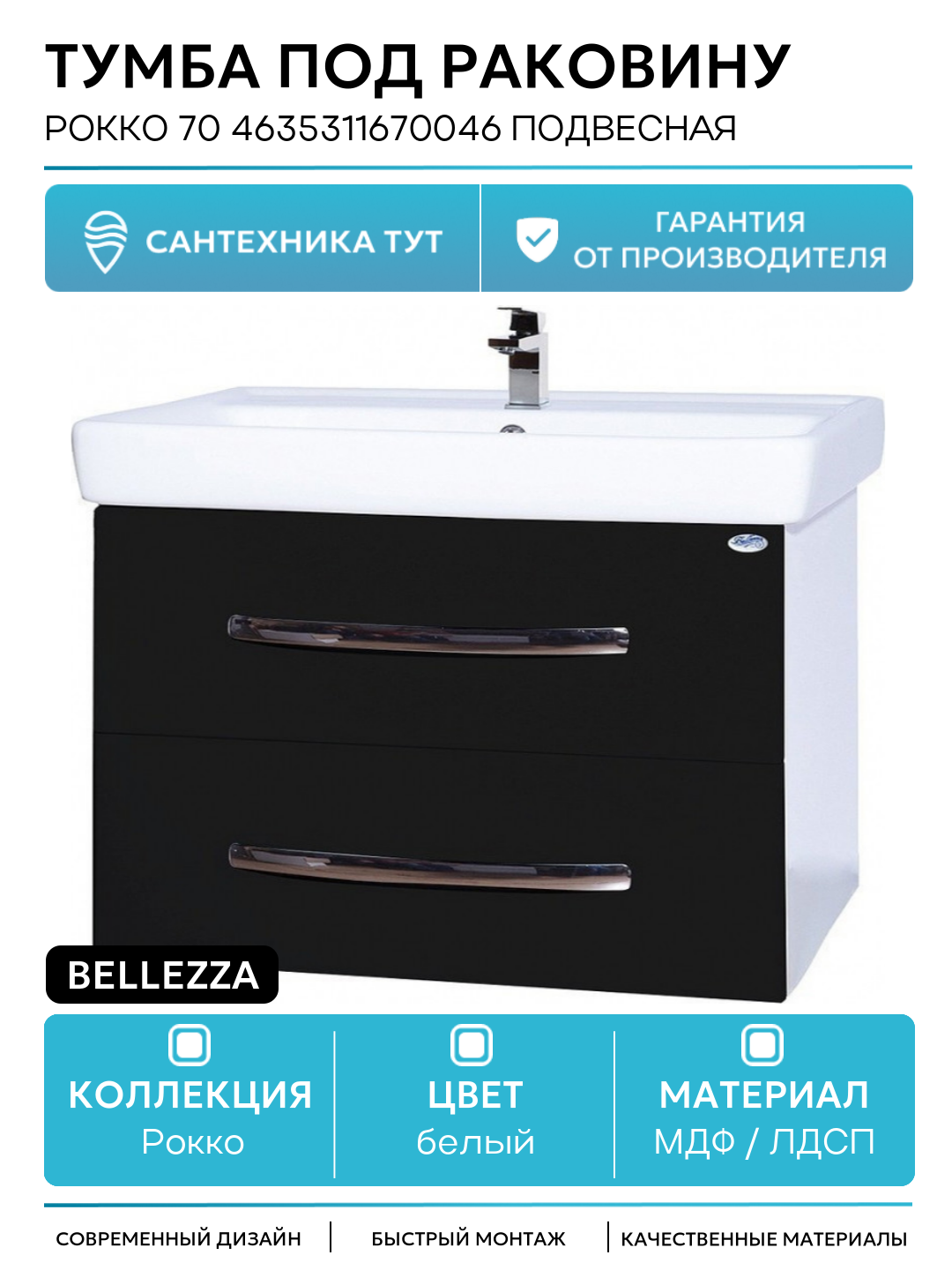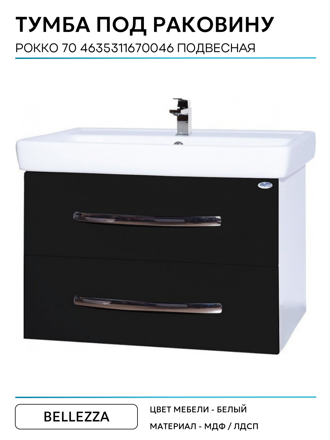 Тумба под раковину Bellezza Рокко 70 4635311670046 подвесная Черная Белая МДФ / ЛДСП белый с ящиками: сравнение цен, характеристики, фото, актуальное наличие и цены.