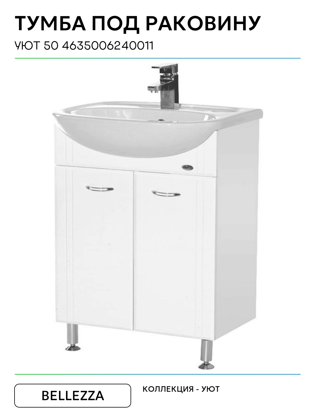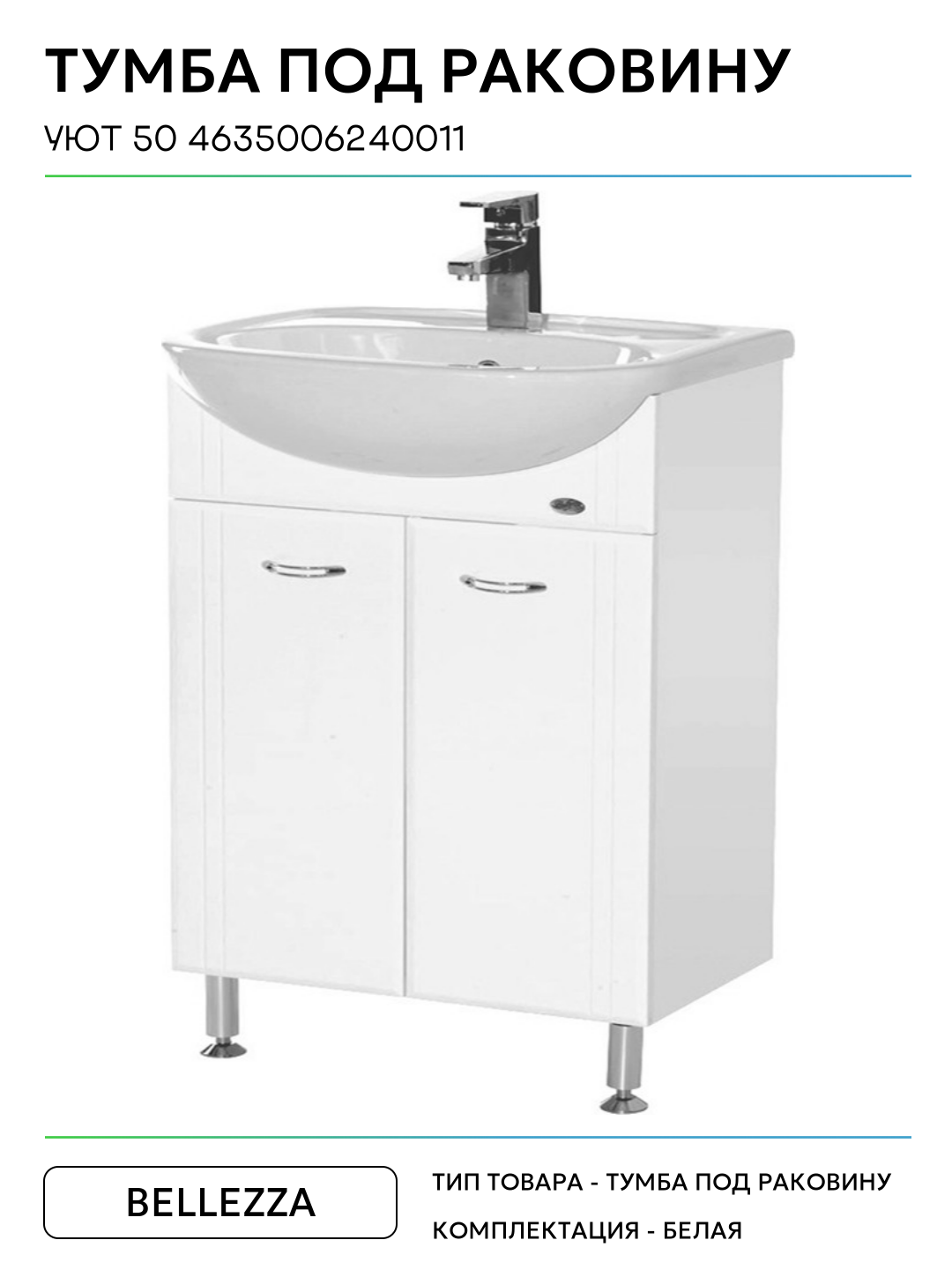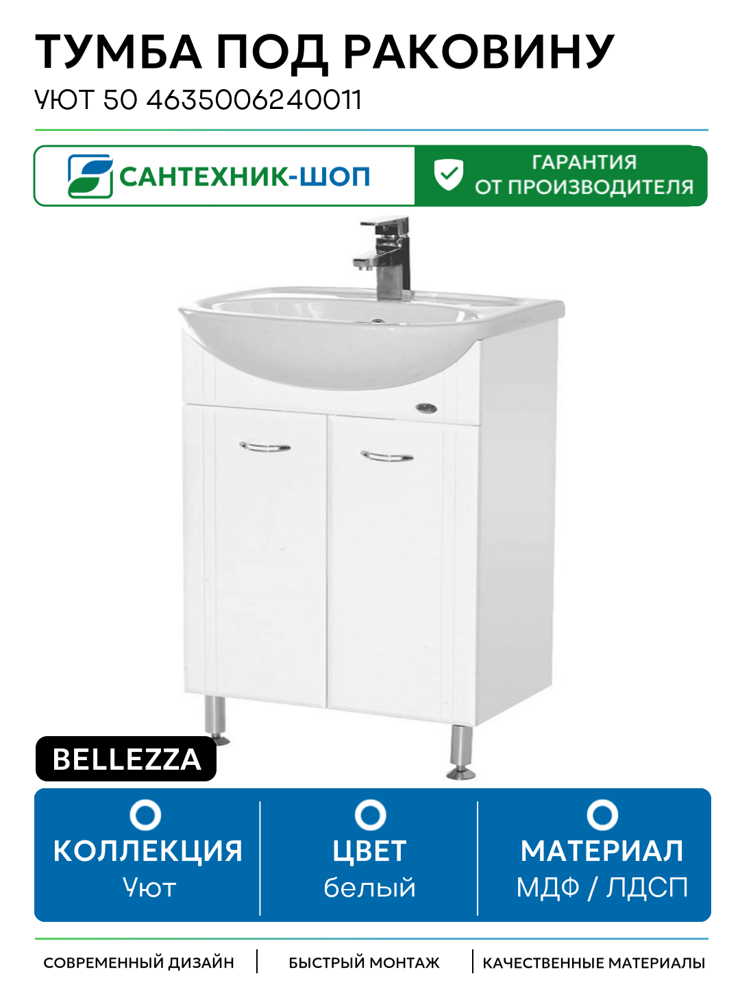 Купить Тумба под раковину Bellezza Уют 50 4635006240011 Белая МДФ / ЛДСП белый с дверками с доставкой по всей России.