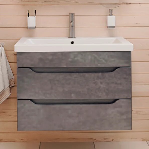 Купить Тумба под раковину без столешницы Emmy Стоун 80 подвесная, серый бетон с доставкой по всей России.