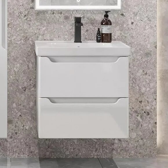 Тумба с раковиной EvaGold 60 см, набор LP20.14 белый глянец для ванной