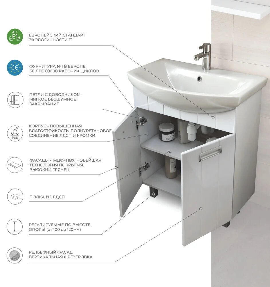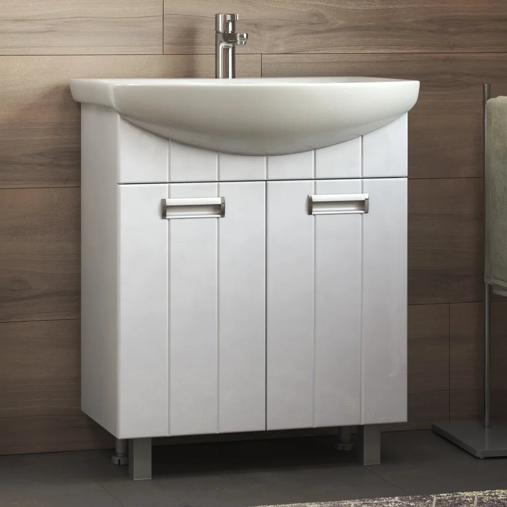 Тумба с раковиной EvaGold 60 см, набор LP20.14 белый глянец для ванной