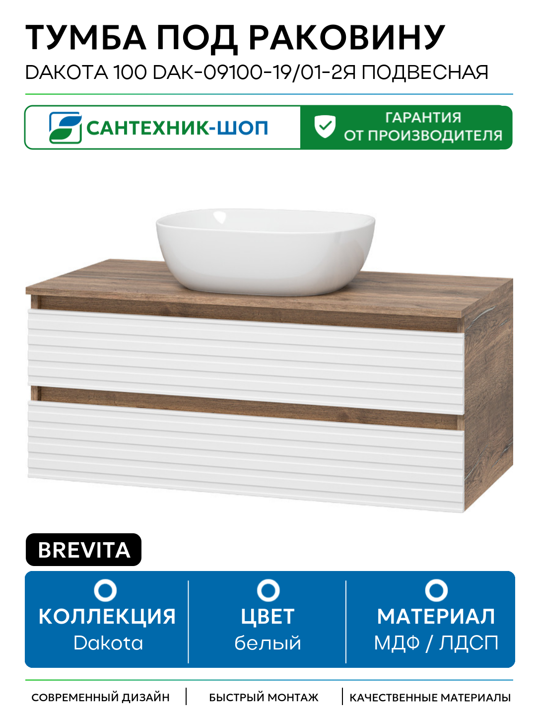 Тумба под раковину Brevita Dakota 100 DAK-09100-19/01-2Я подвесная Белая матовая Дуб Галифакс олово МДФ / ЛДСП белый с ящиками Россия: сравнение цен, характеристики, фото, актуальное наличие и цены.