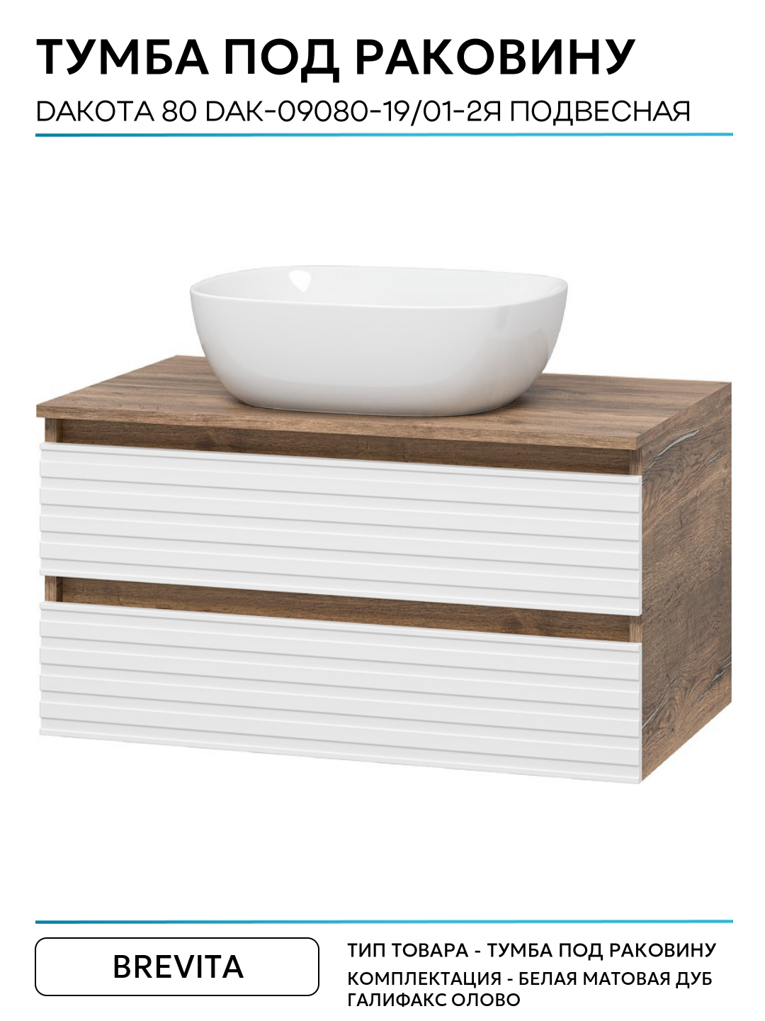 Тумба под раковину Dakota 80 DAK-09080-19/01-2Я подвесная Белая матовая Дуб Галифакс олово: сравнение цен, характеристики, фото, актуальное наличие и цены.