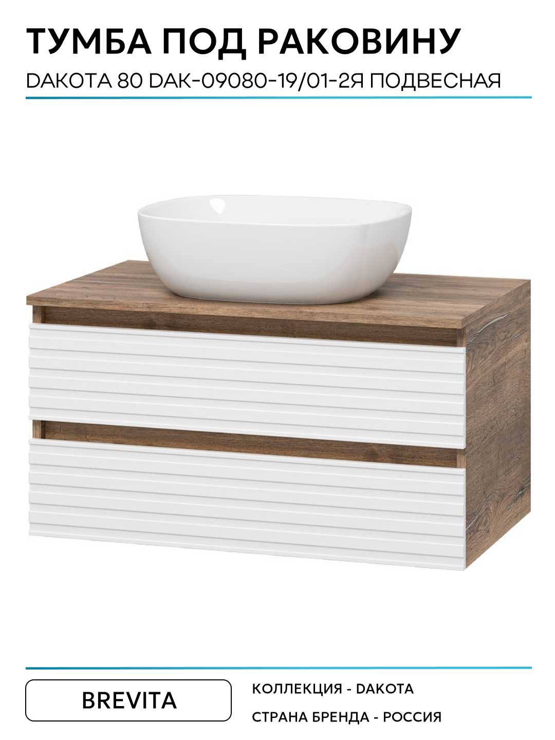 Купить Тумба под раковину Dakota 80 DAK-09080-19/01-2Я подвесная Белая матовая Дуб Галифакс олово с доставкой по всей России.