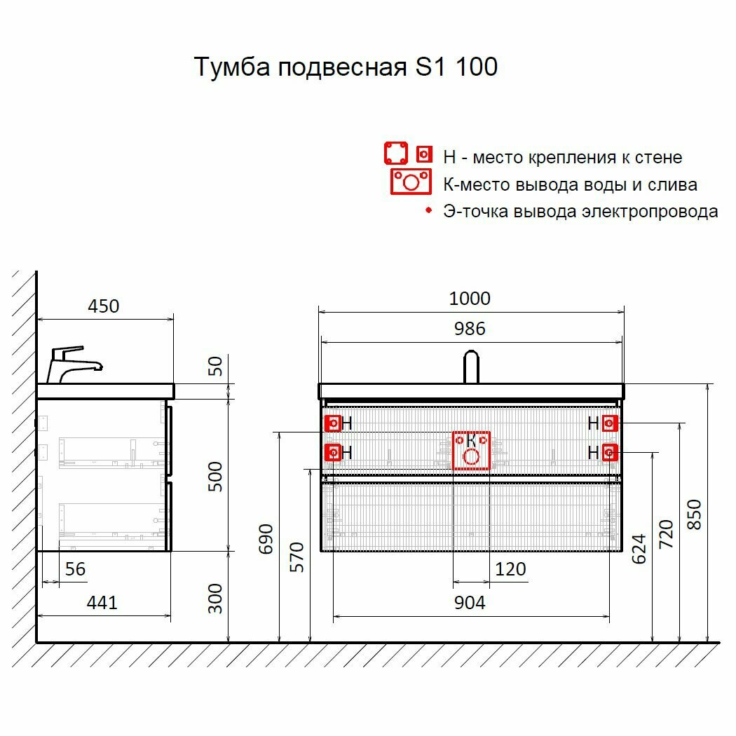 Тумба под раковину для ванной AQUAme S1 100 серая