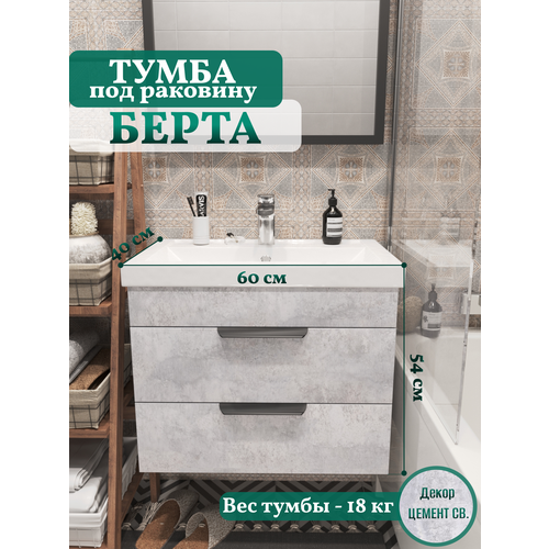 Купить Тумба под раковину для ванной/Тумба без раковины подвесная 56х38х50 см цвет цемент серый с доставкой по всей России. Тумба под раковину для ванной/Тумба без раковины подвесная 56х38х50 см цвет цемент серый: сравнение цен, характеристики, фото, актуальное наличие и цены.