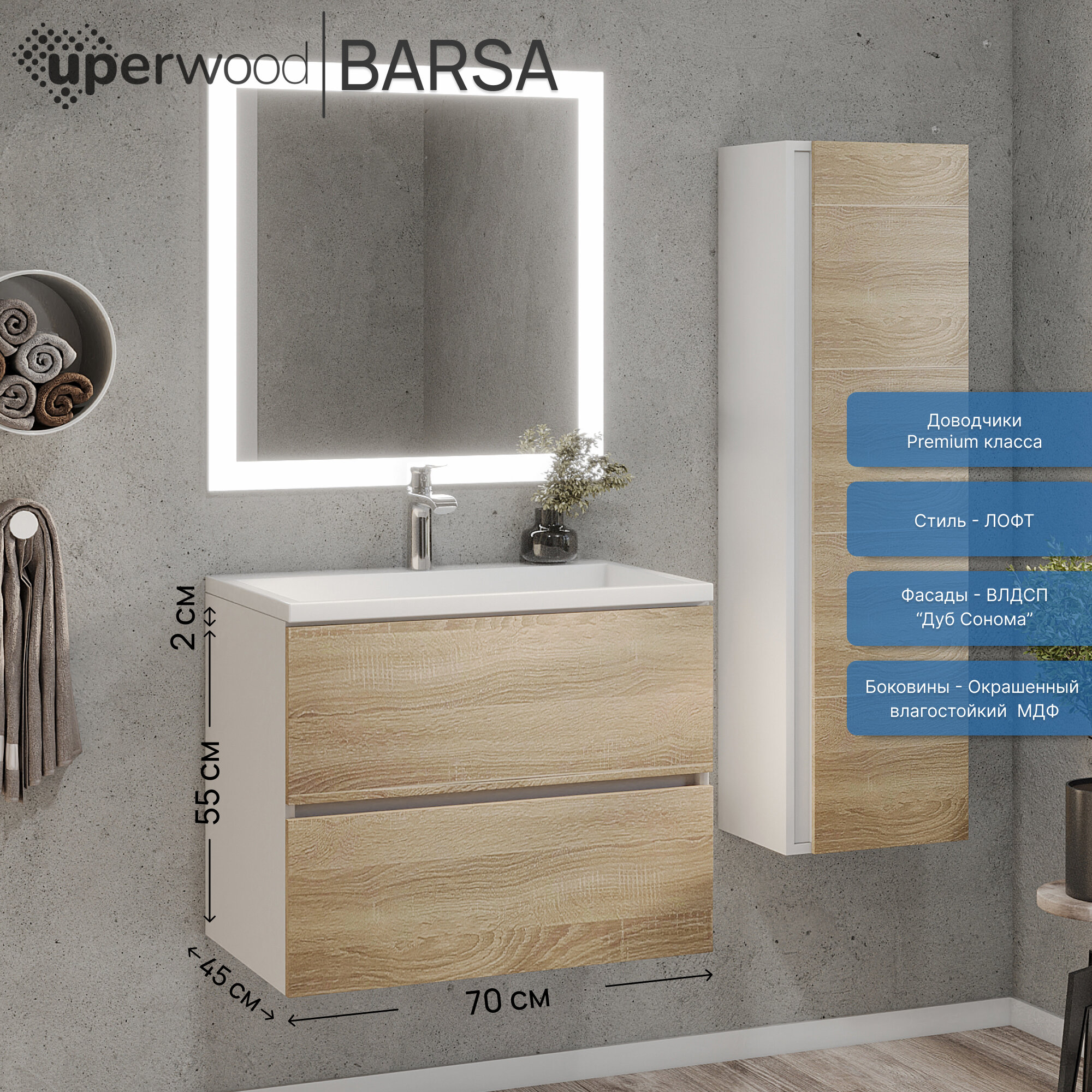 Тумба под раковину для ванной Uperwood Barsa 70 см, подвесная, белая/дуб сонома: сравнение цен, характеристики, фото, актуальное наличие и цены.