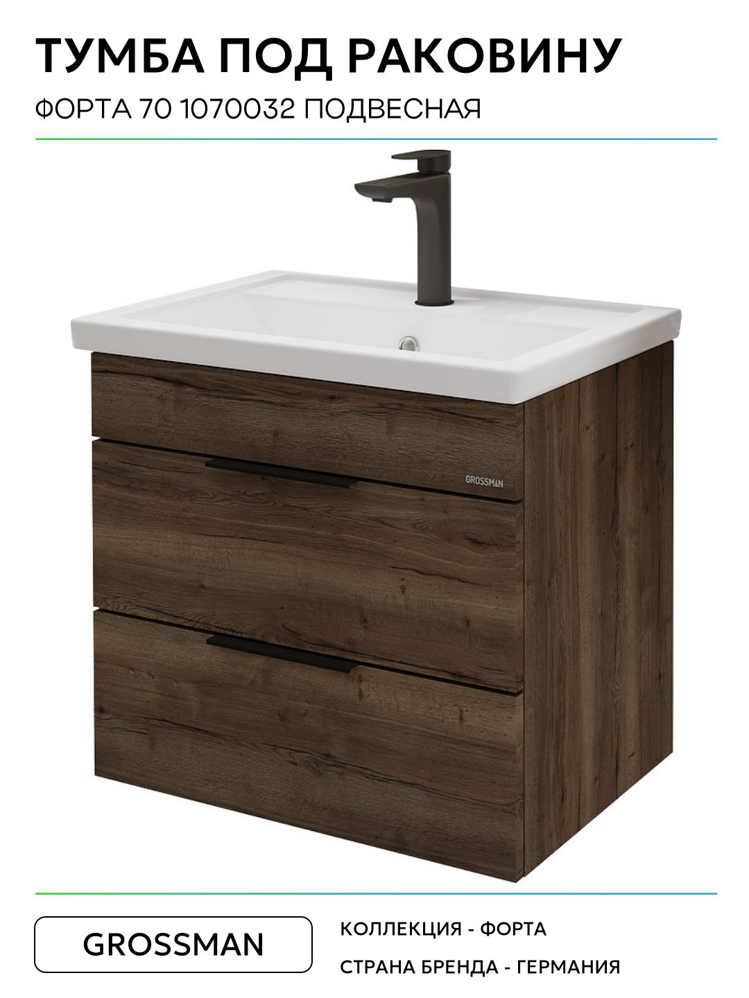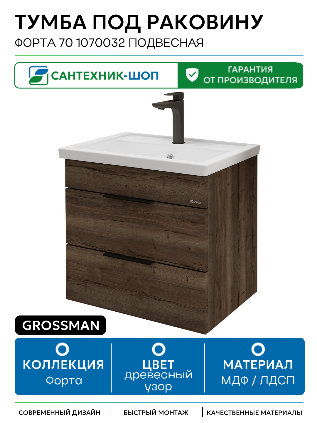 Тумба под раковину Grossman Форта 70 1070032 подвесная МДФ / ЛДСП древесный узор с ящиками Германия: сравнение цен, характеристики, фото, актуальное наличие и цены.