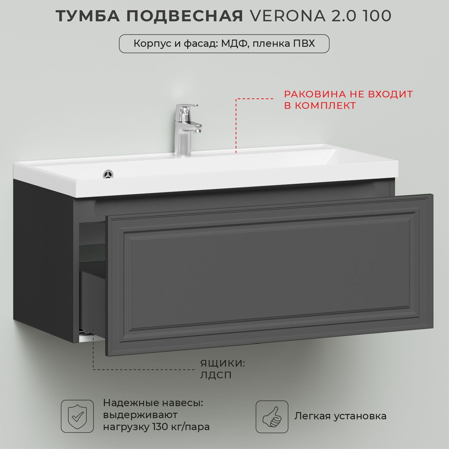Тумба под раковину Итана Verona 2.0 100 998х451х400 Графит: сравнение цен, характеристики, фото, актуальное наличие и цены.