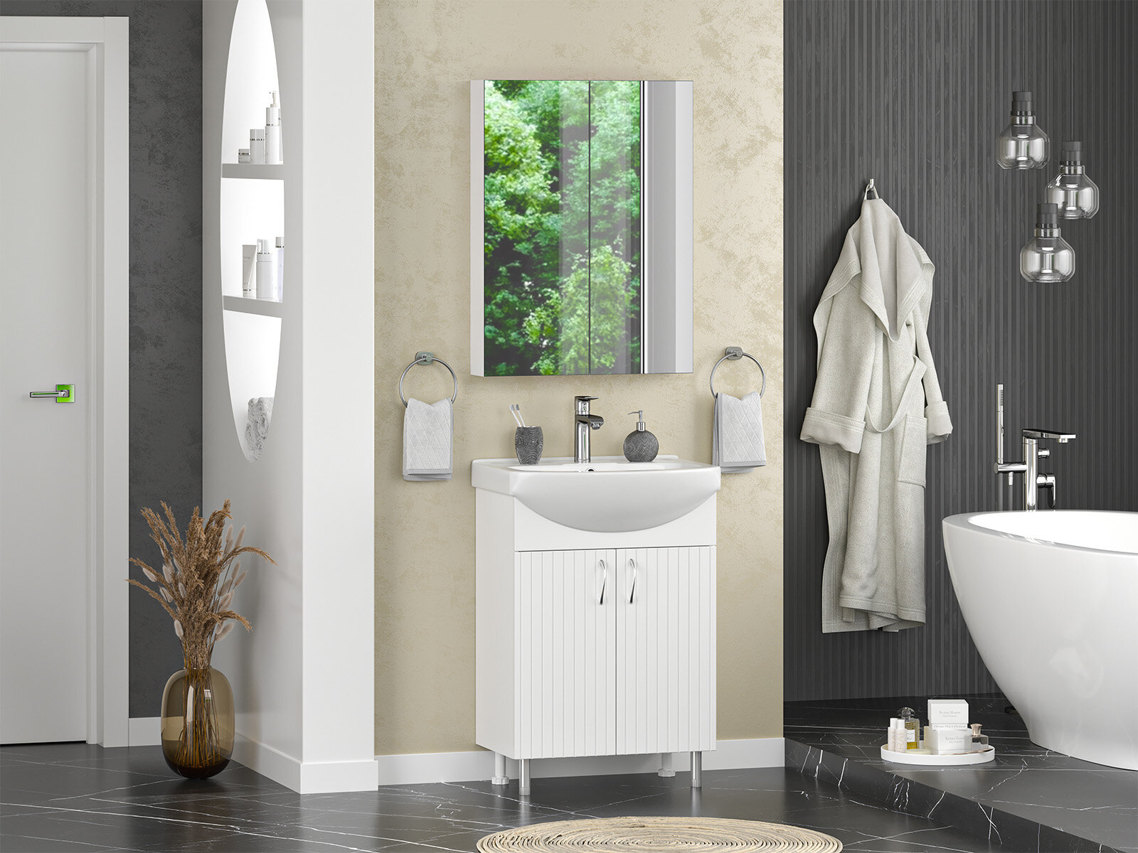 Тумба под раковину Misty Изео Э-Изе01060-021Н 57 см, напольная, белый глянец/белый матовый: сравнение цен, характеристики, фото, актуальное наличие и цены.