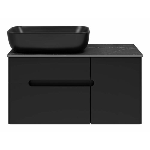 Столешницы из керамогранита в сером или черном цвете поставляются со всеми необходимыми технологическими отверстиями под каждый из трех размеров тумбы.