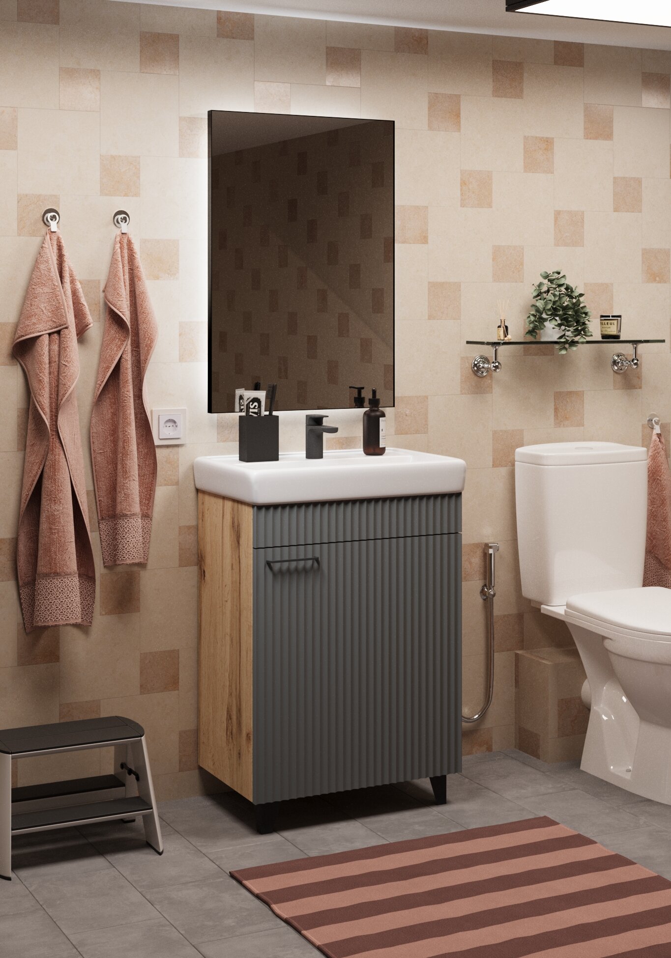 Тумба под раковину напольная ЛДСП/МДФ Leman Wave 50 (тафта/дуб вотан)