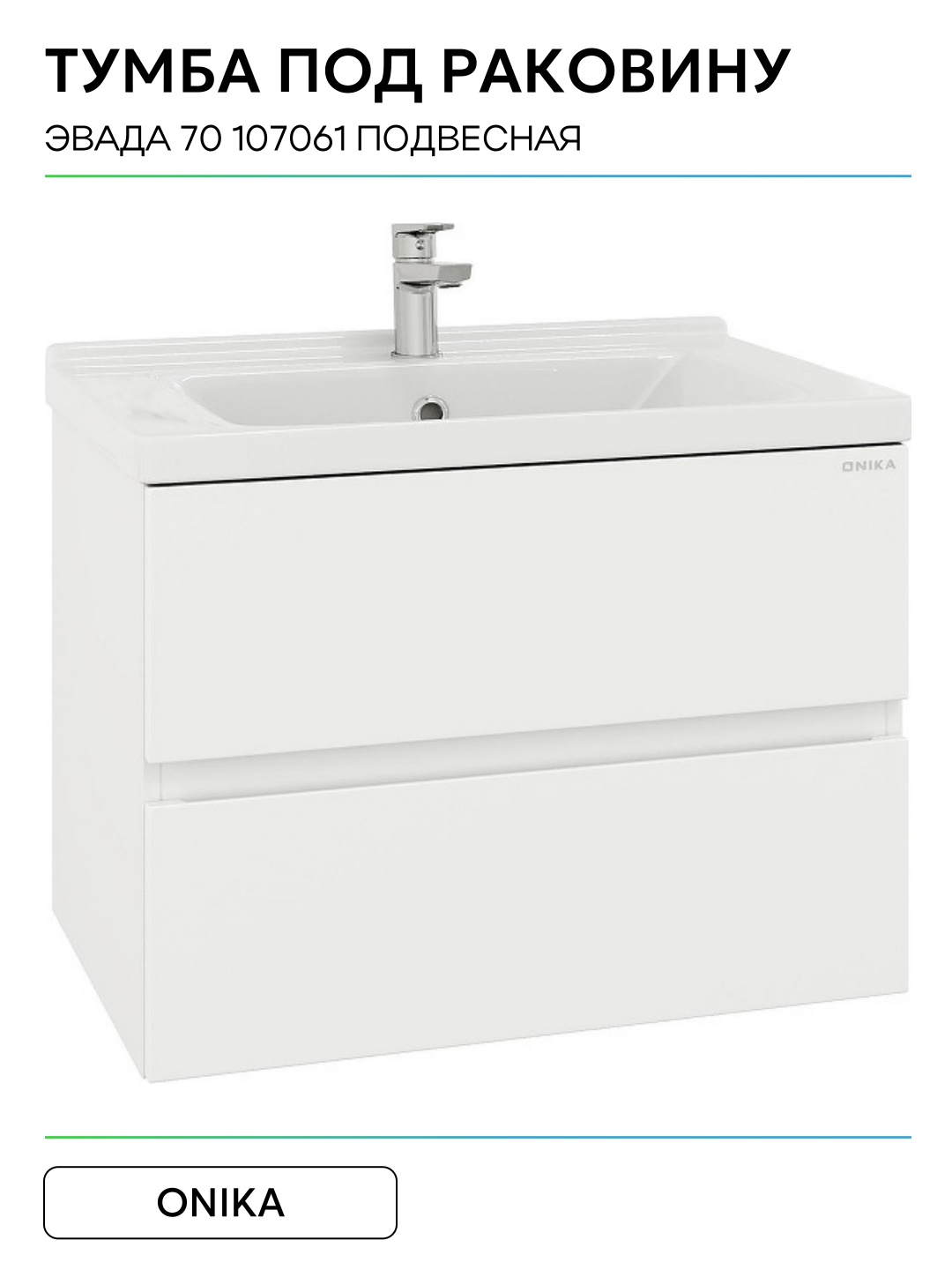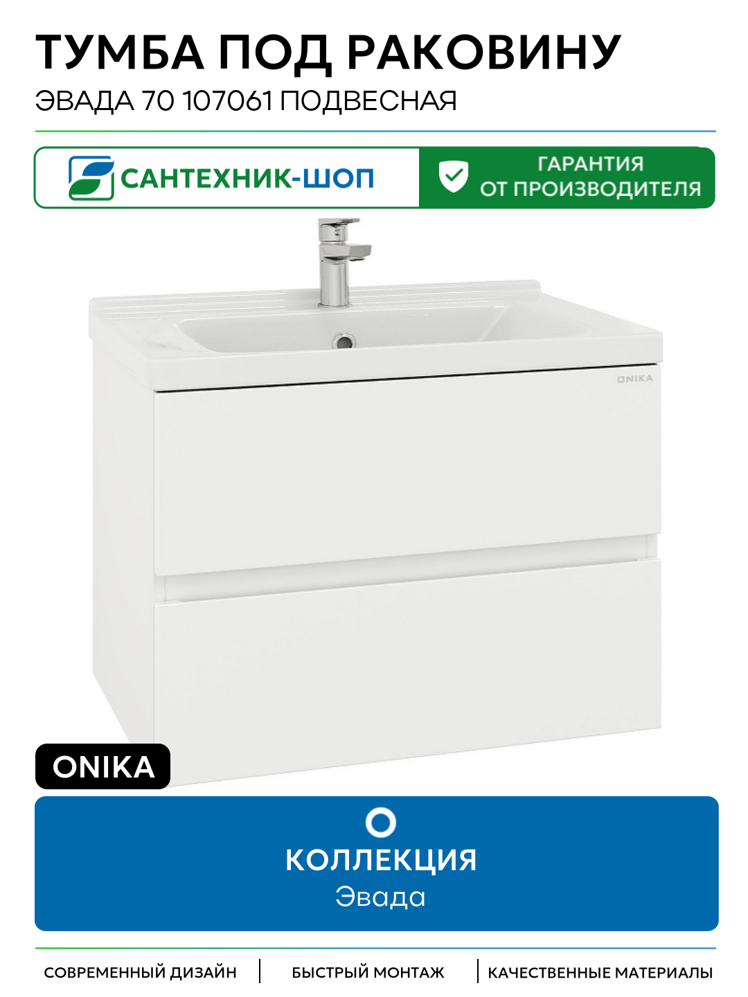 Купить Тумба под раковину Onika Эвада 70 107061 подвесная цвет Белый Россия с доставкой по всей России. Тумба под раковину Onika Эвада 70 107061 подвесная цвет Белый Россия: сравнение цен, характеристики, фото, актуальное наличие и цены.