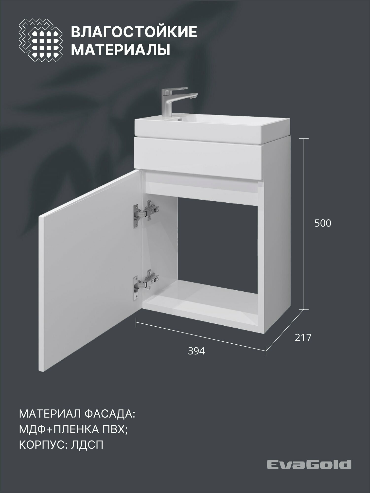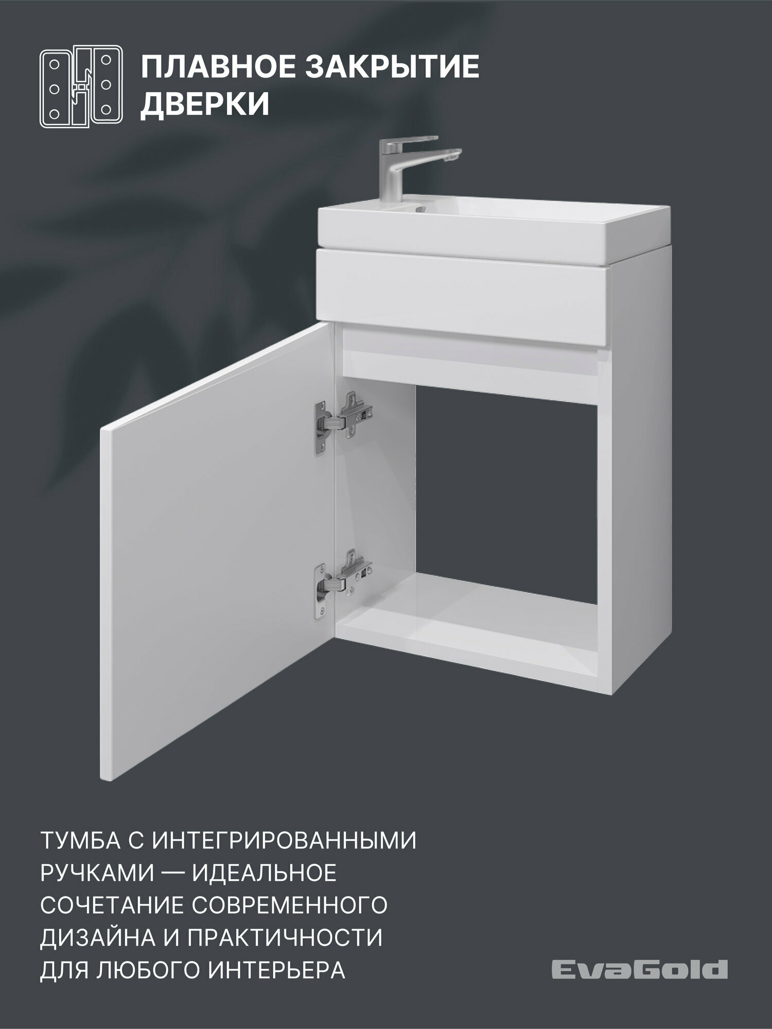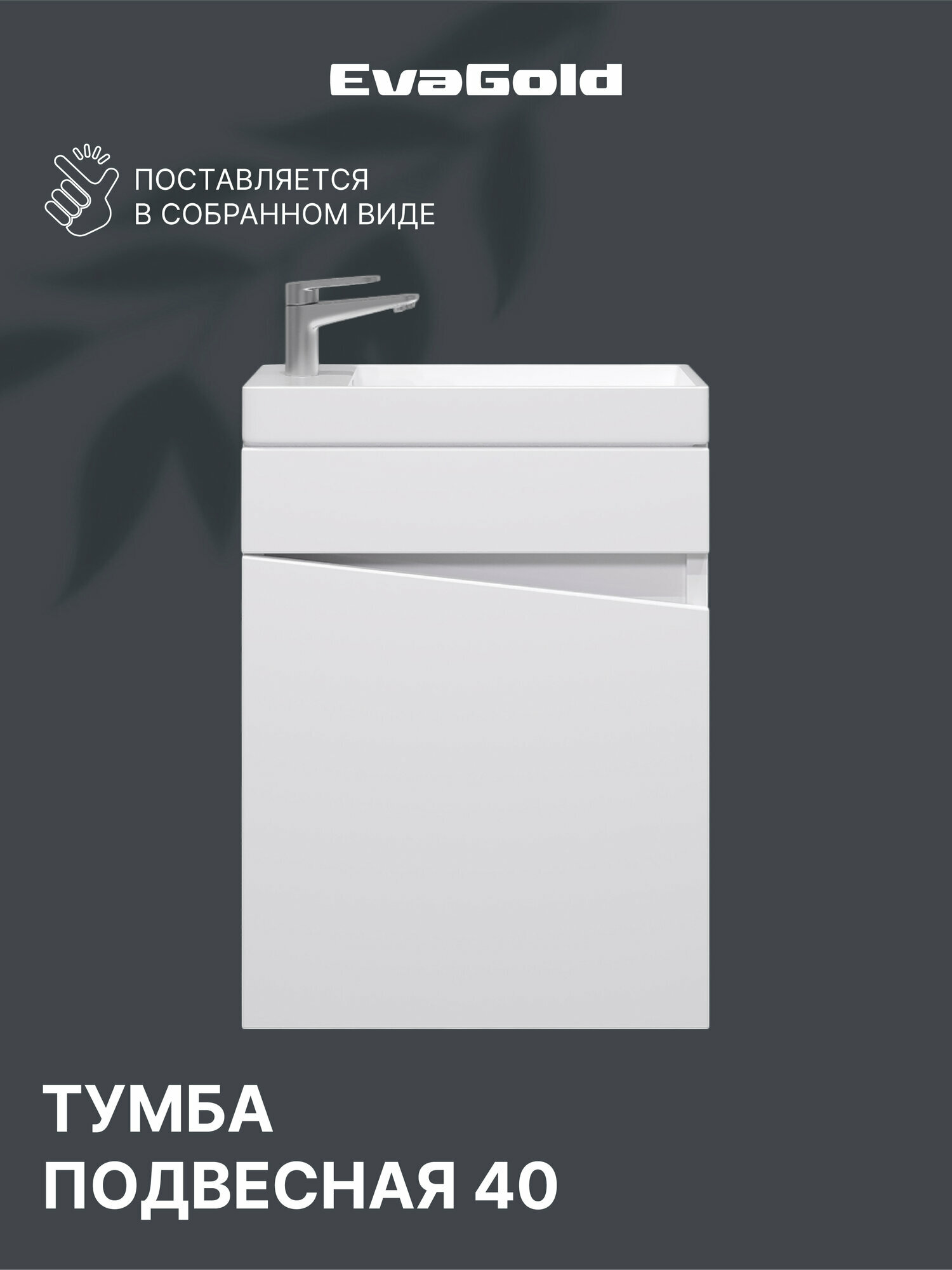 Тумба под раковину подвесная EvaGold 40 см, модель ND161.5 белый для ванной: сравнение цен, характеристики, фото, актуальное наличие и цены.