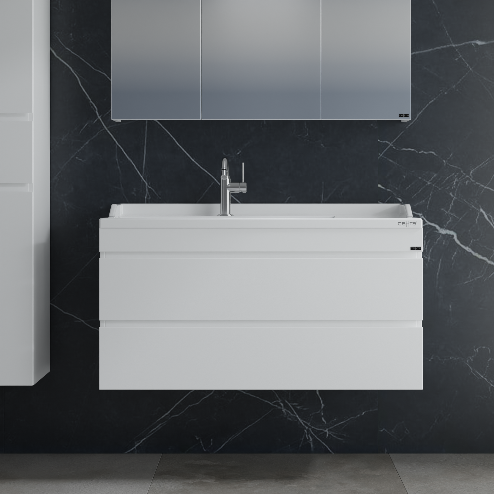Купить Тумба под раковину подвесная «Марс 100» 2 ящ. (рак. Сириус 100 литой мрамор) с доставкой по всей России.
