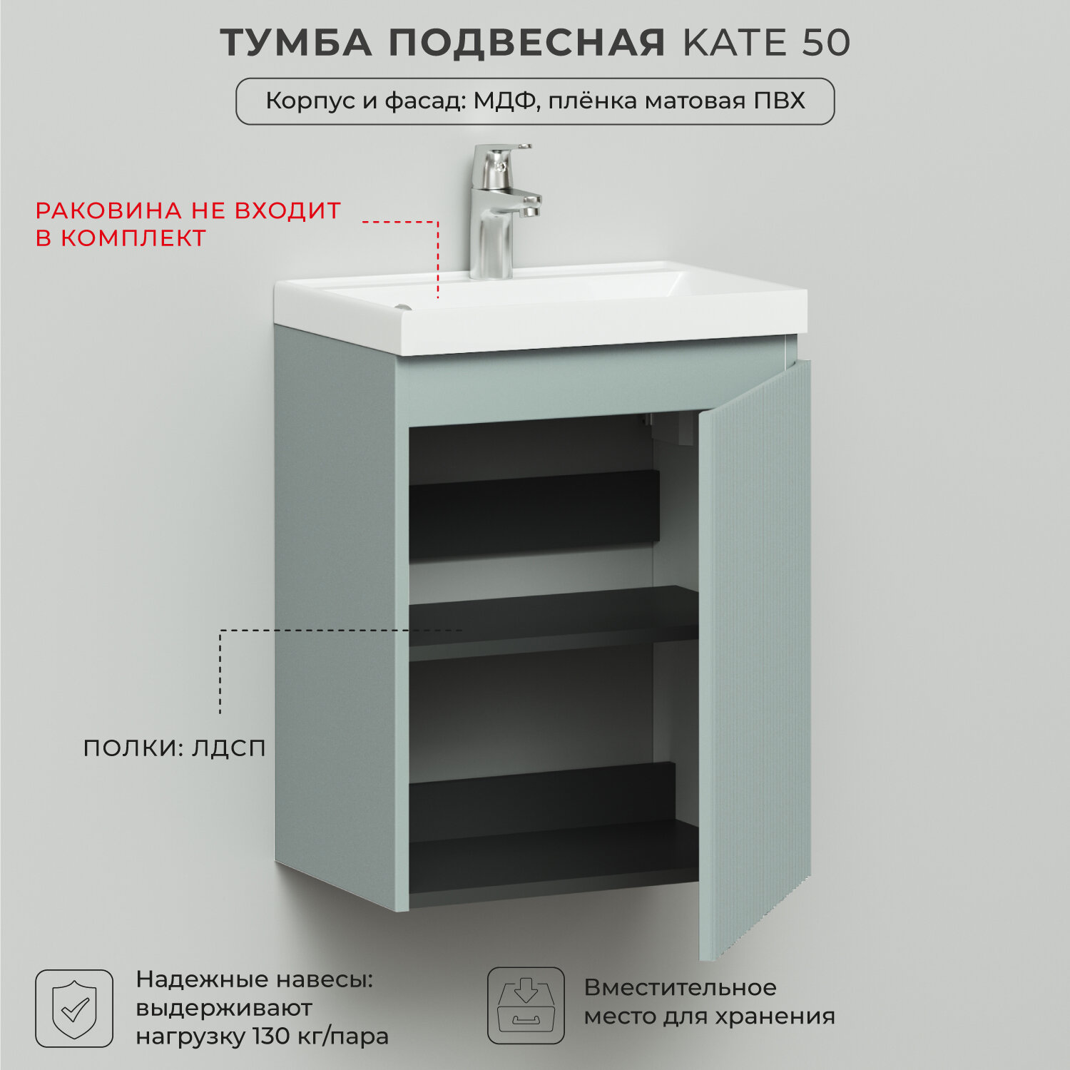 Купить Тумба под раковину подвесная распашная Итана Kate 50 490х341х600 Токио с доставкой по всей России.