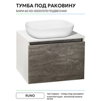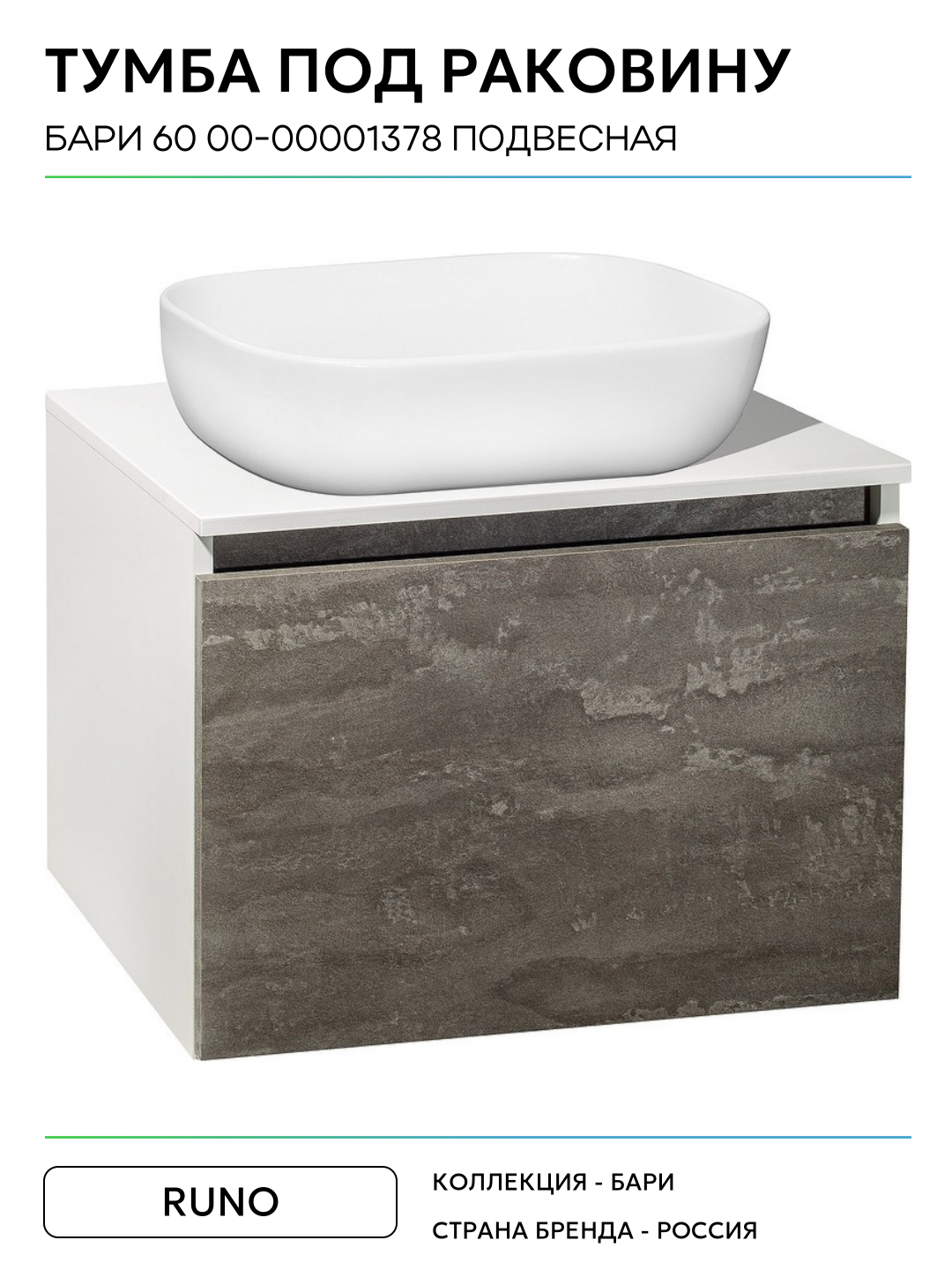 Купить Тумба под раковину Runo Бари 60 00-00001378 подвесная Железный камень Белая МДФ / ЛДСП белый с ящиками Россия с доставкой по всей России.