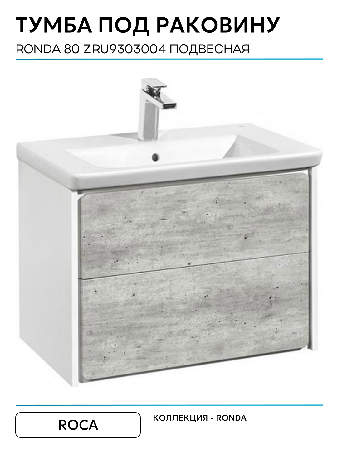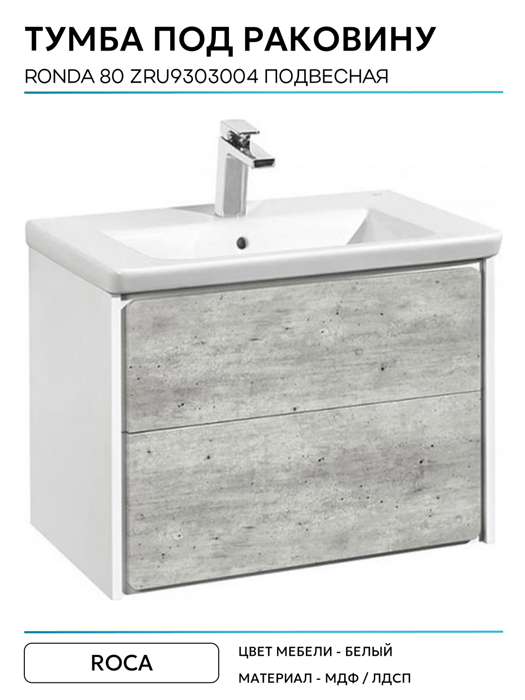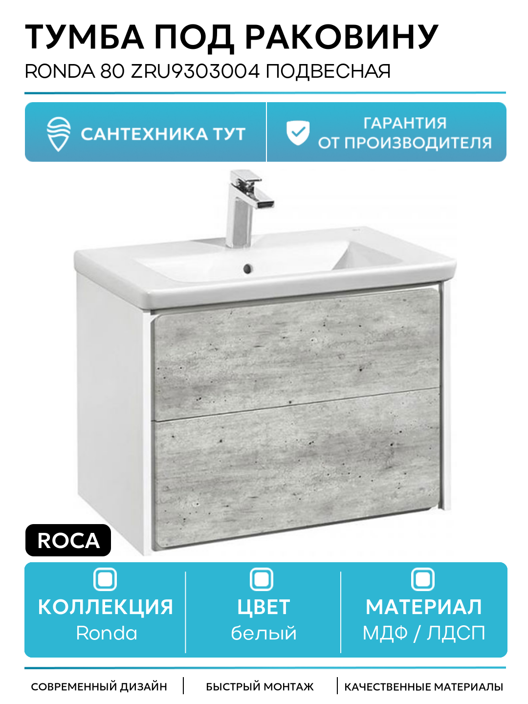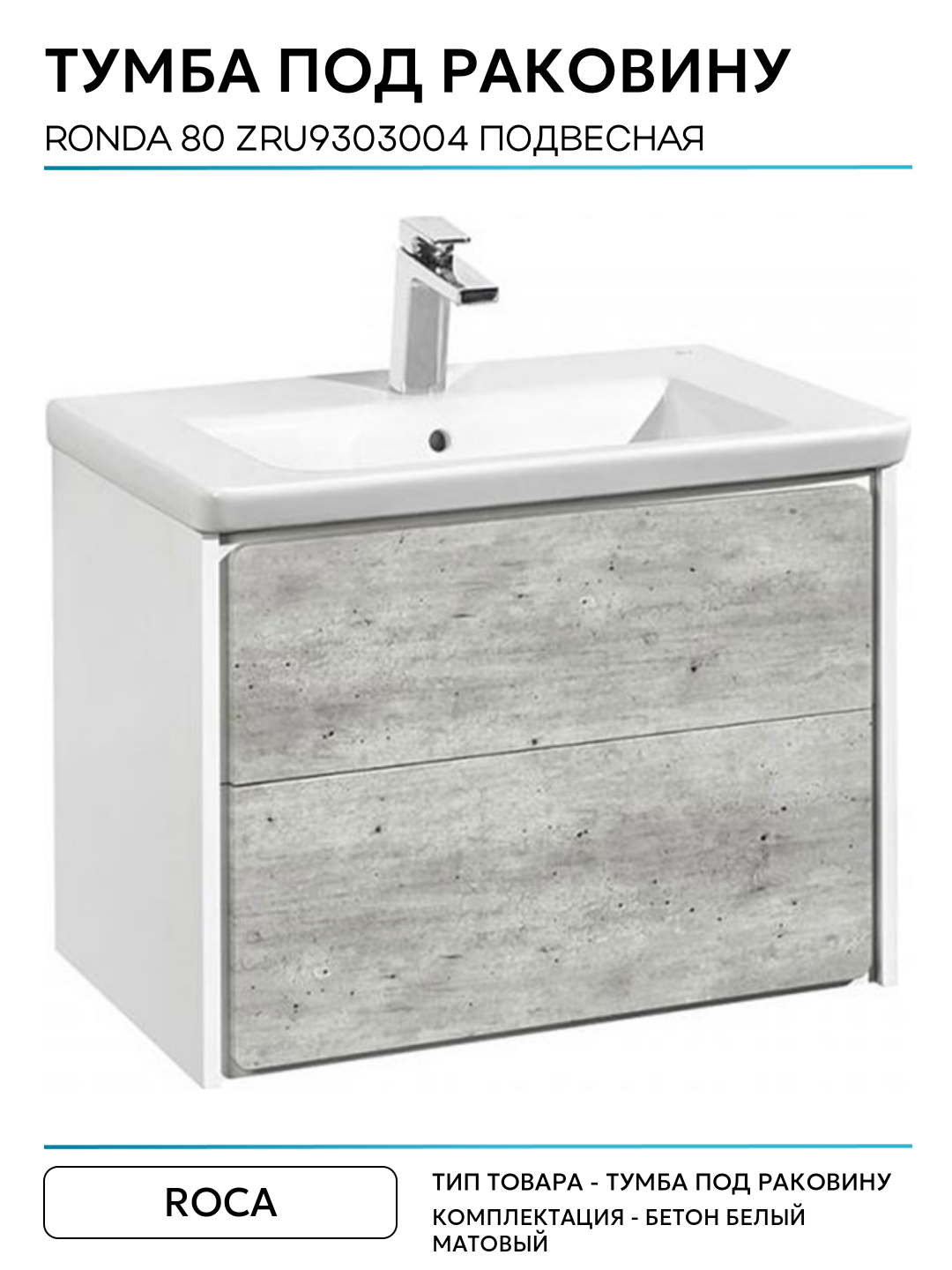 Тумба под раковину Roca Ronda 80 ZRU9303004 подвесная Бетон Белый матовый МДФ / ЛДСП белый с ящиками: сравнение цен, характеристики, фото, актуальное наличие и цены.