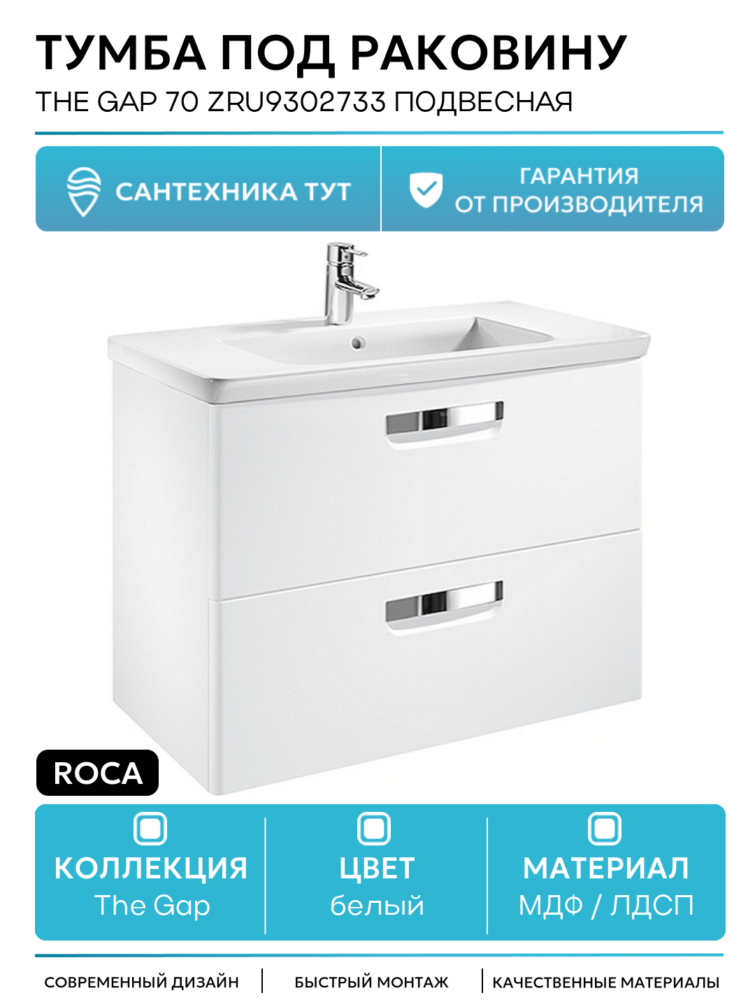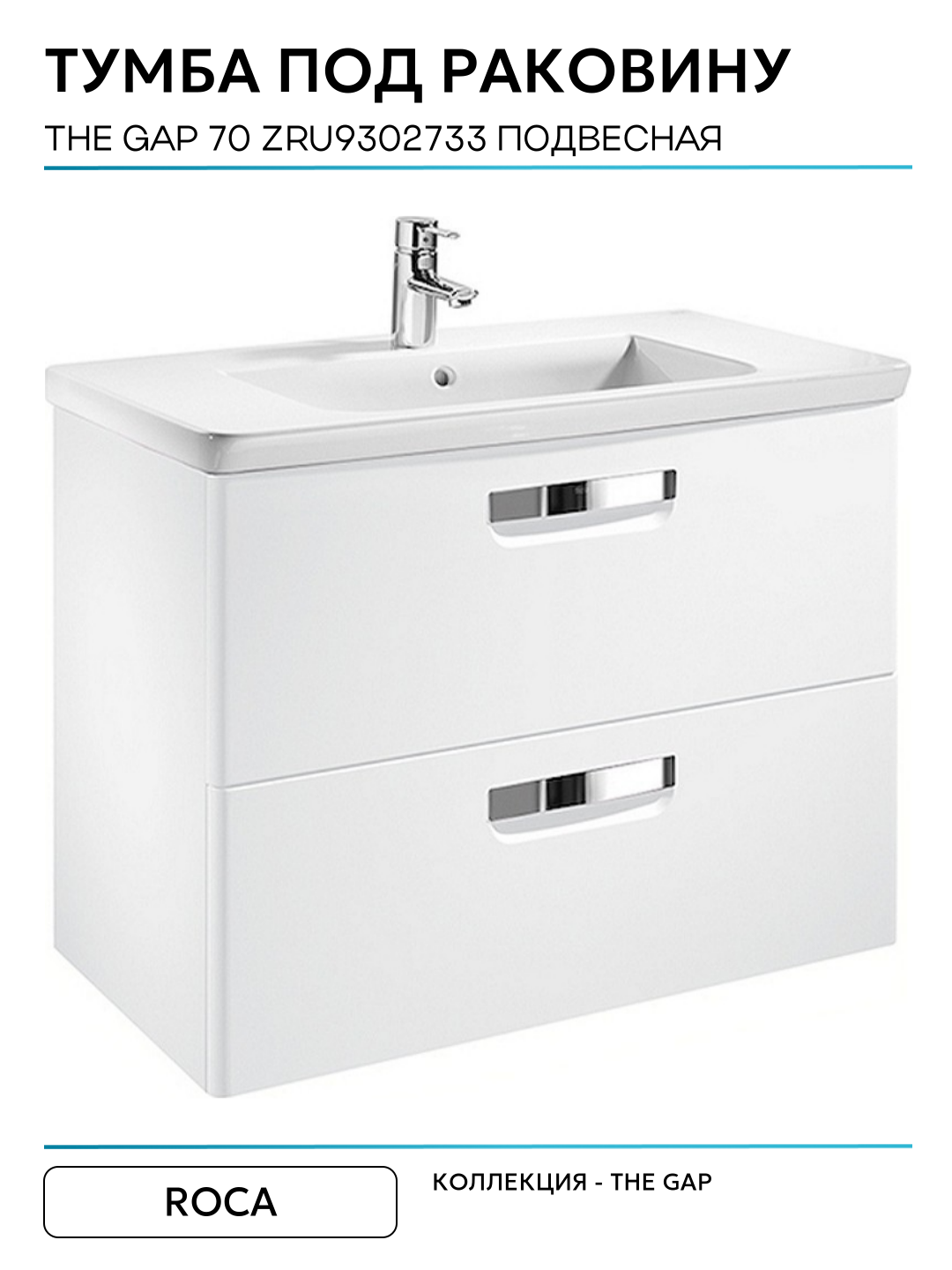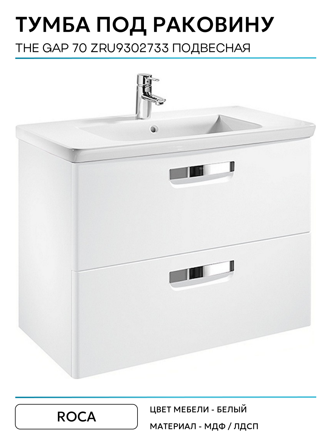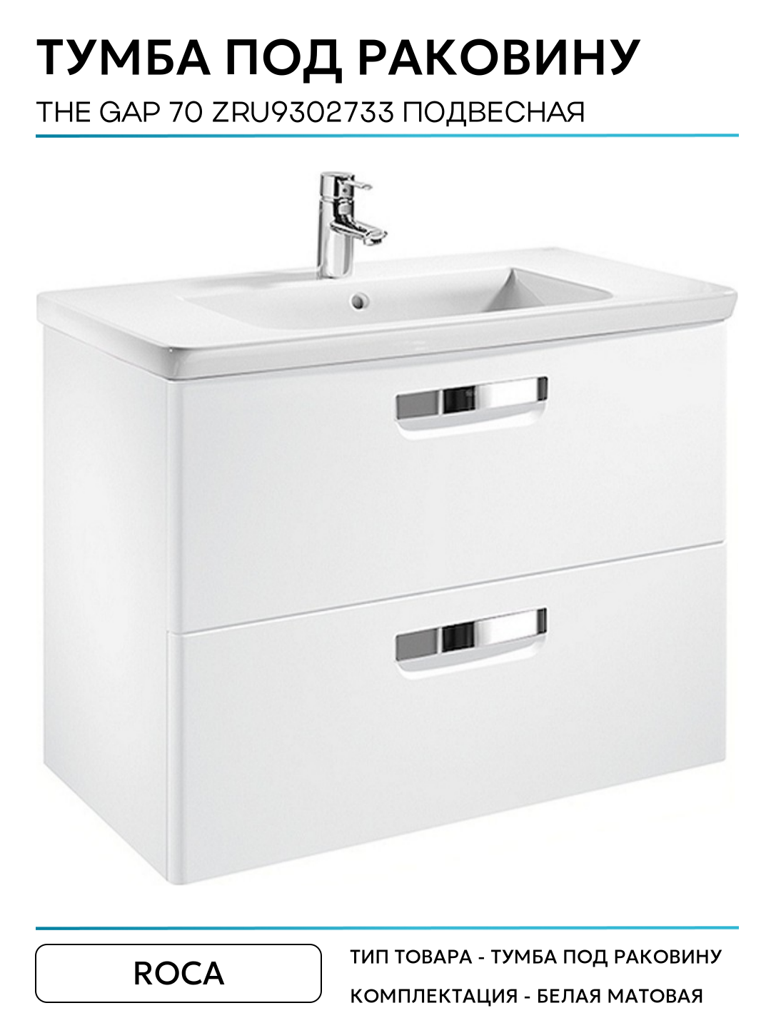 Купить Тумба под раковину Roca The Gap 70 ZRU9302733 подвесная Белая матовая МДФ / ЛДСП белый с ящиками с доставкой по всей России.