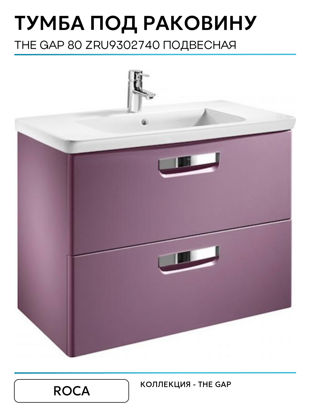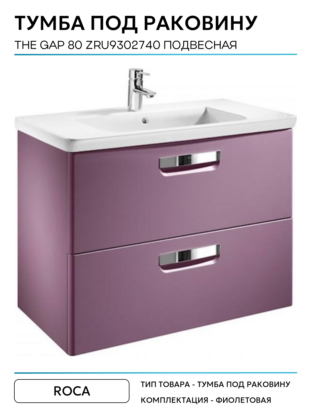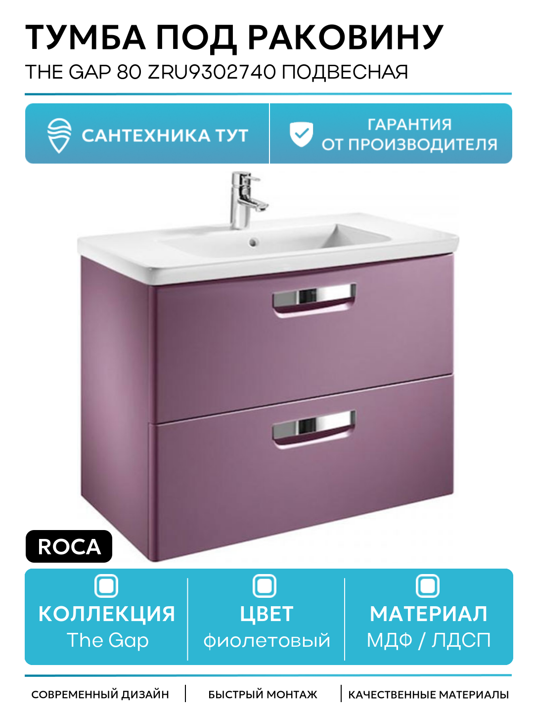 Тумба под раковину Roca The Gap 80 ZRU9302740 подвесная Фиолетовая МДФ / ЛДСП фиолетовый с ящиками: сравнение цен, характеристики, фото, актуальное наличие и цены.
