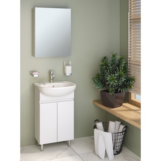 Купить Тумба под раковину Runo Лада 50 00-00001162 Белая МДФ / ЛДСП белый с дверками Россия с доставкой по всей России.
