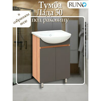 Тумба под раковину RUNO лада - модное и оригинальное решение для бюджетного оснащения ванной комнаты. Тумба выполнена в двух цветах - классическом белом и в стильном цвете - графит/лиственница. Тумба в ванную имеет две распашные дверцы и одну внутреннюю полку. Корпус тумбы выполнен из материала ДСП с покрытием ламинат, фасад из МДФ с покрытием пленка. В комплекте идут петли со встроенным доводчиком, 2 хромированные и 2 пластиковые ножки. К тумбе для ванной лада подходит керамическая раковина "Уют 50" (510*415 мм). Раковина имеет глубину 19,5 см. Мебель для ванной RUNO - красота и практичность в мелочах! Цвет товара на мониторе может отличаться от реальных цветов, это зависит от настроек цветового профиля и разрешения Вашего монитора или мобильного устройства.