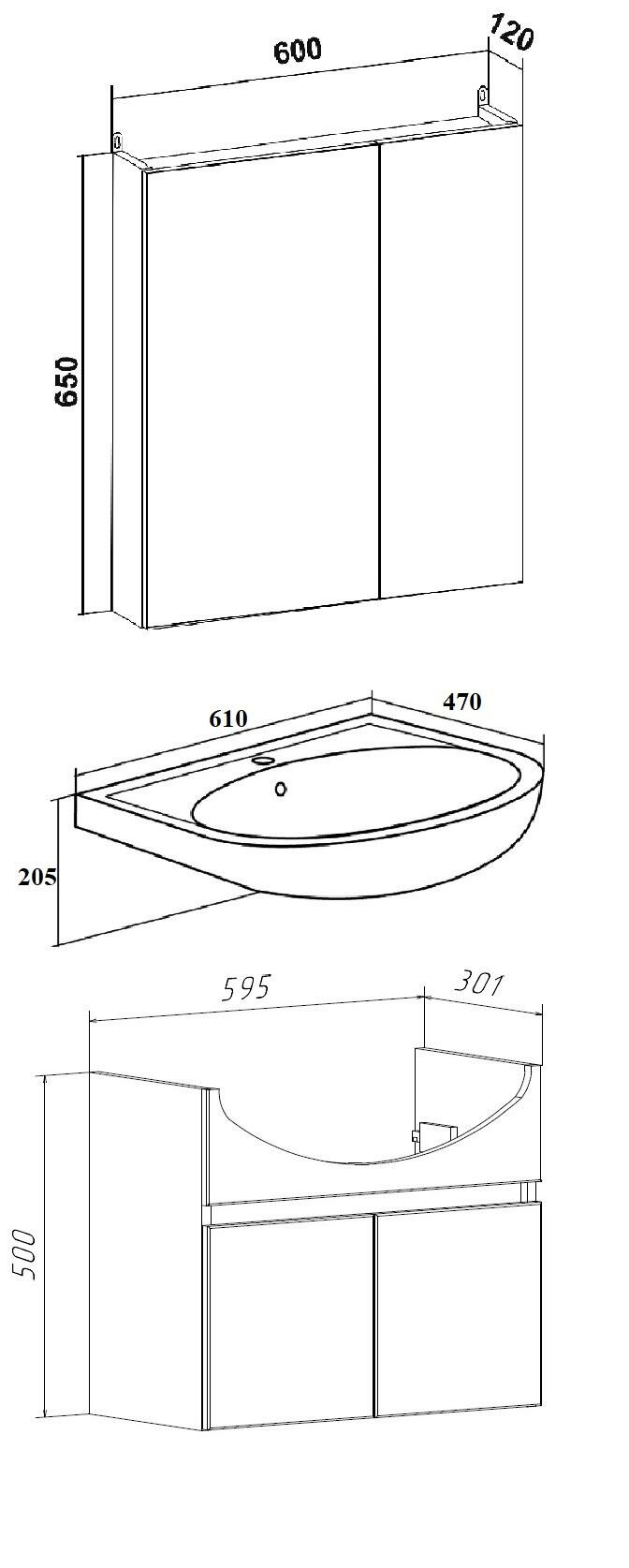 тумба под раковину - 1 шт., раковина - 1 шт., смеситель - 1 шт., выпуск - 1шт.