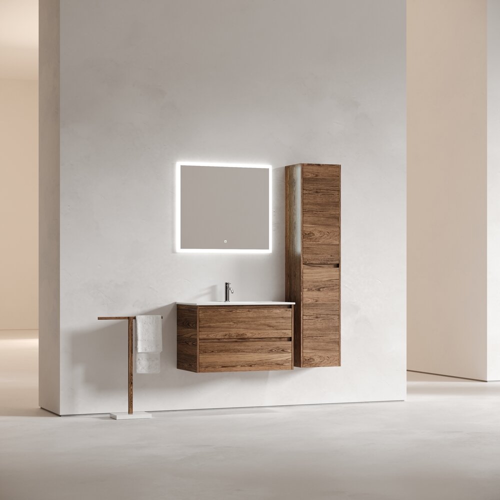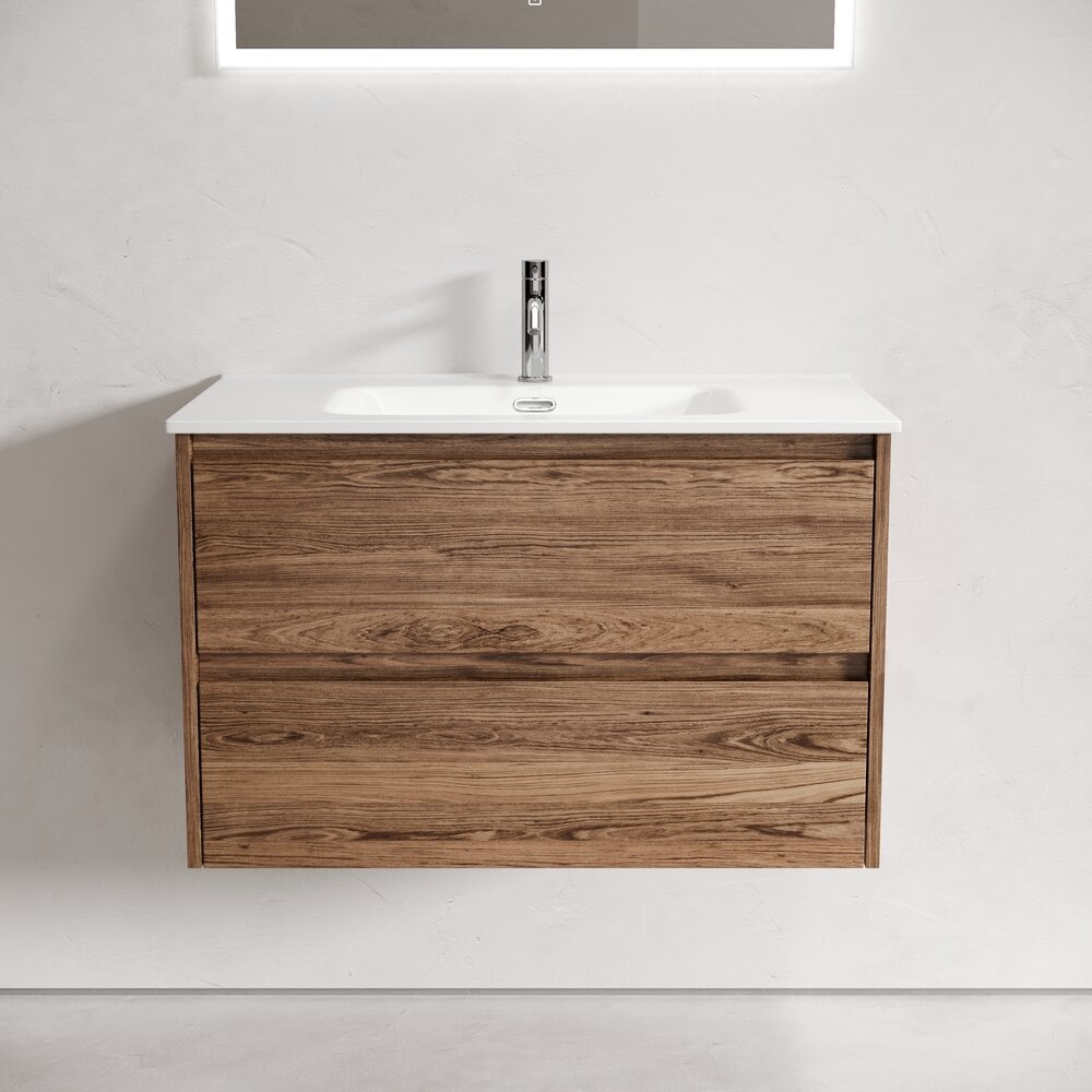 Тумба подвесная SANCOS Libra 790х450х500 c двумя ящиками оснащенными доводчиками скрытого монтажа с системой Soft close (плавного закрывания), c фрезерованными ручками по всей длине фасада, дуб чарльстон, арт. LB80ECH. Подходящая модель раковины - арт. CN7005