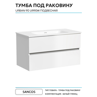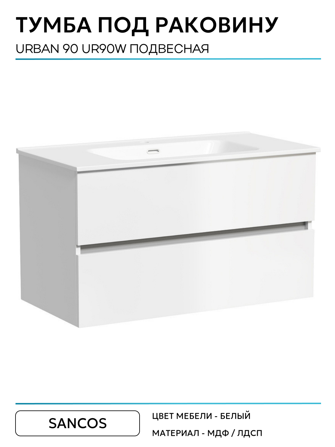 Тумба под раковину SANCOS Urban 890х450х550, c двумя ящиками оснащенными доводчиками, белый глянец , арт. UR90W: сравнение цен, характеристики, фото, актуальное наличие и цены.