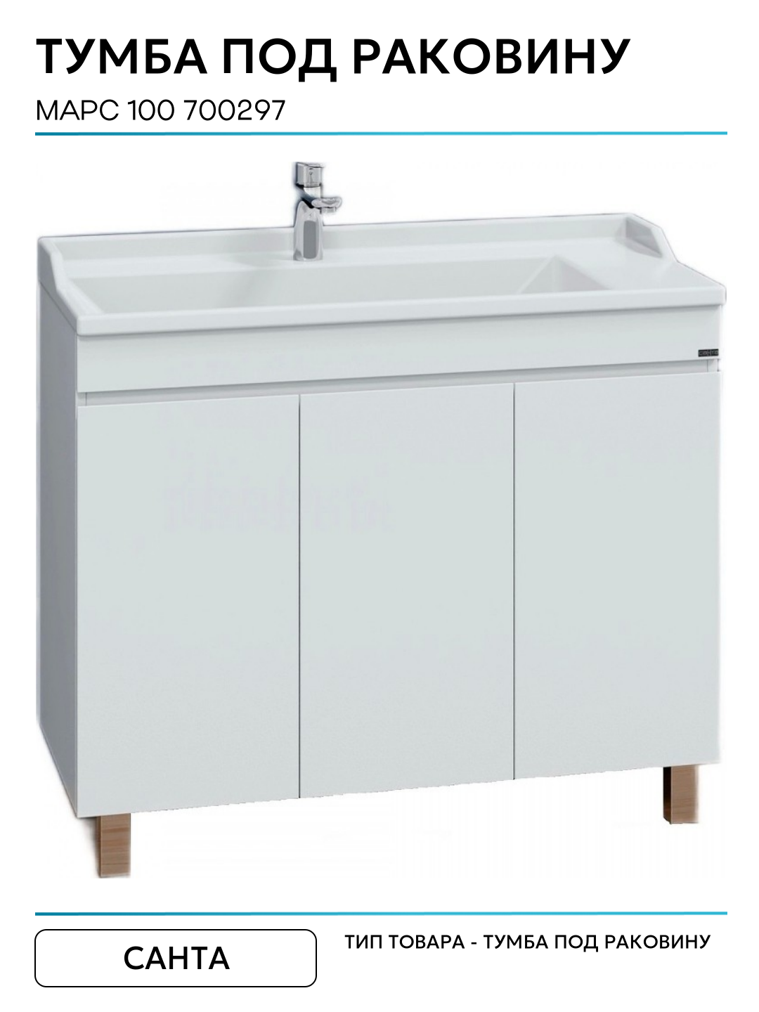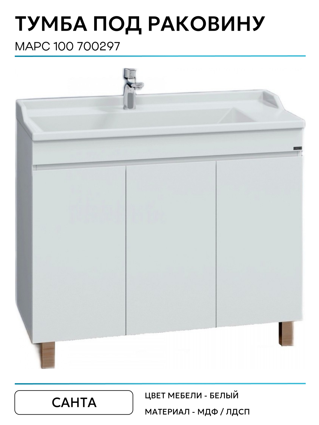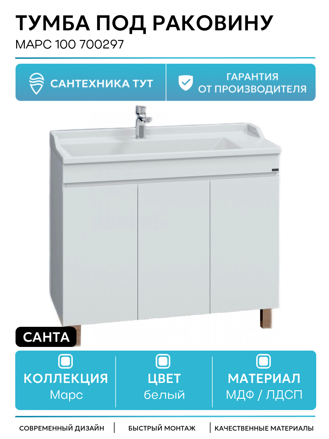 Тумба под раковину СанТа Марс 100 700297 МДФ / ЛДСП белый с ящиками Россия: сравнение цен, характеристики, фото, актуальное наличие и цены.