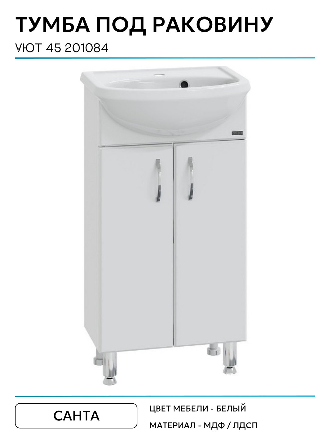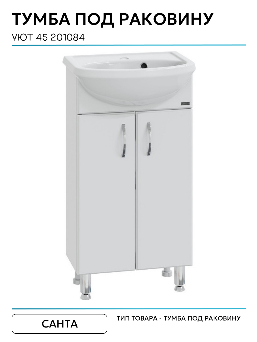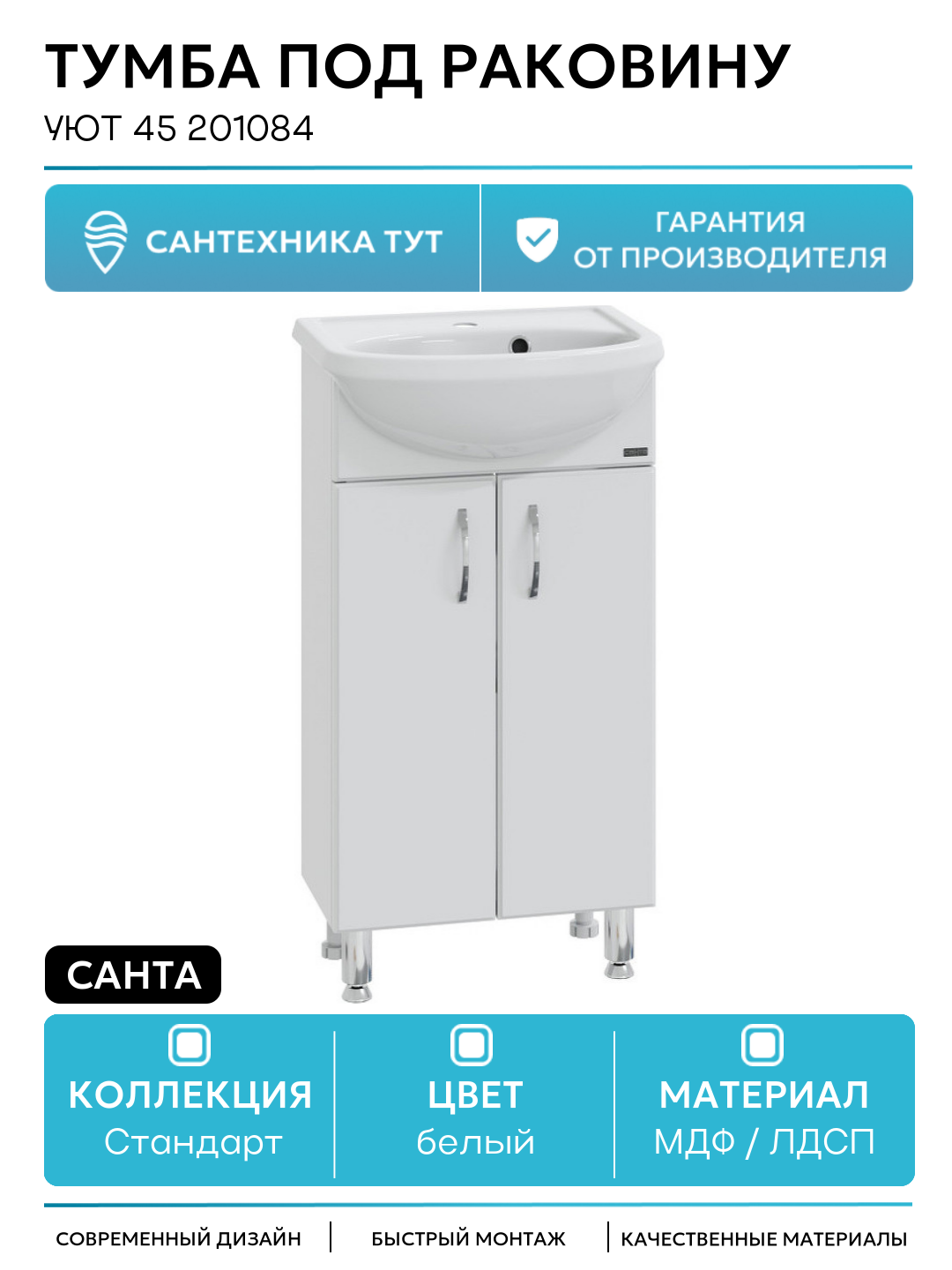 Купить Тумба под раковину СанТа Уют 45 201084 МДФ / ЛДСП белый с дверками Россия с доставкой по всей России. Тумба под раковину СанТа Уют 45 201084 МДФ / ЛДСП белый с дверками Россия: сравнение цен, характеристики, фото, актуальное наличие и цены.
