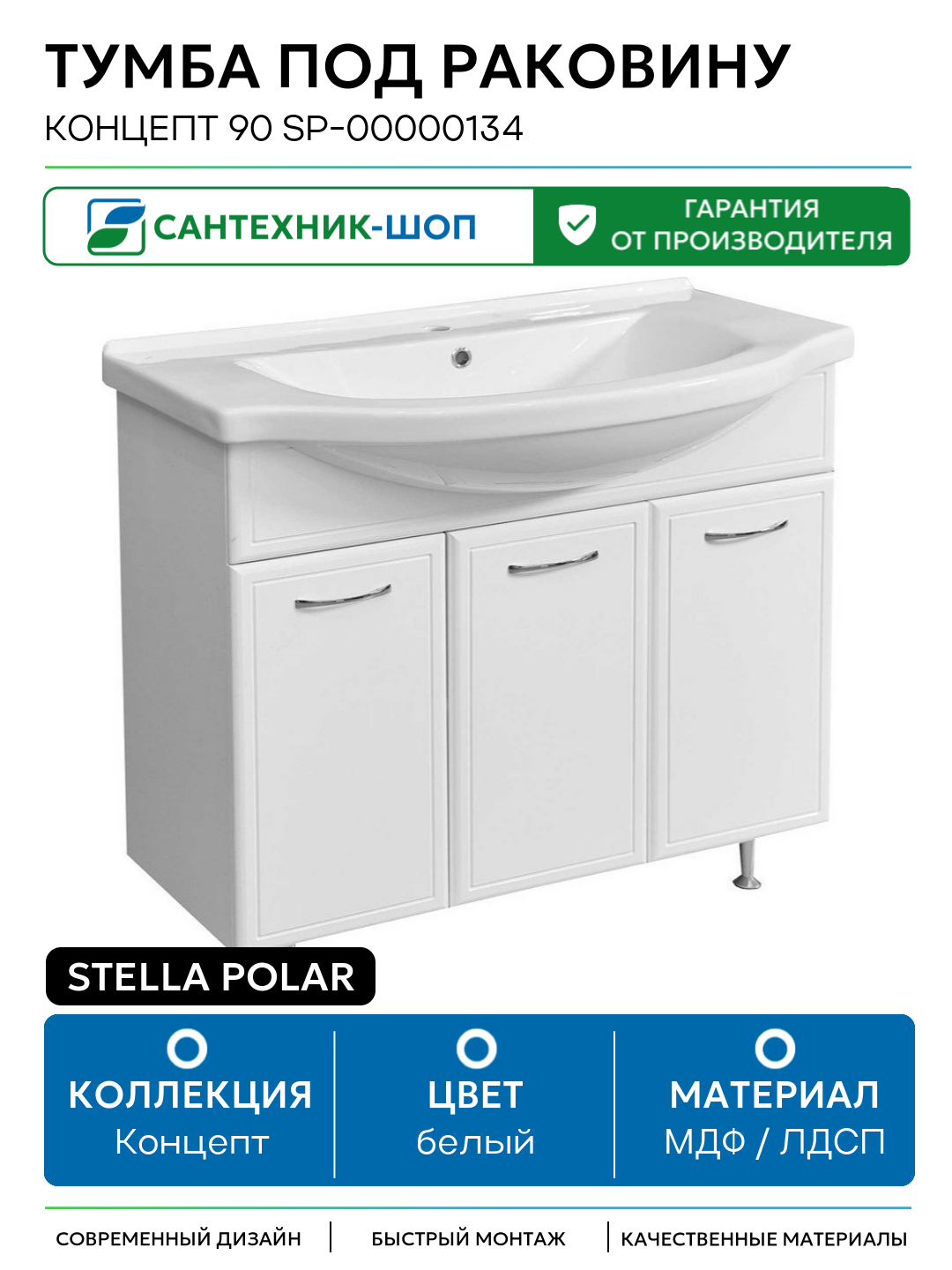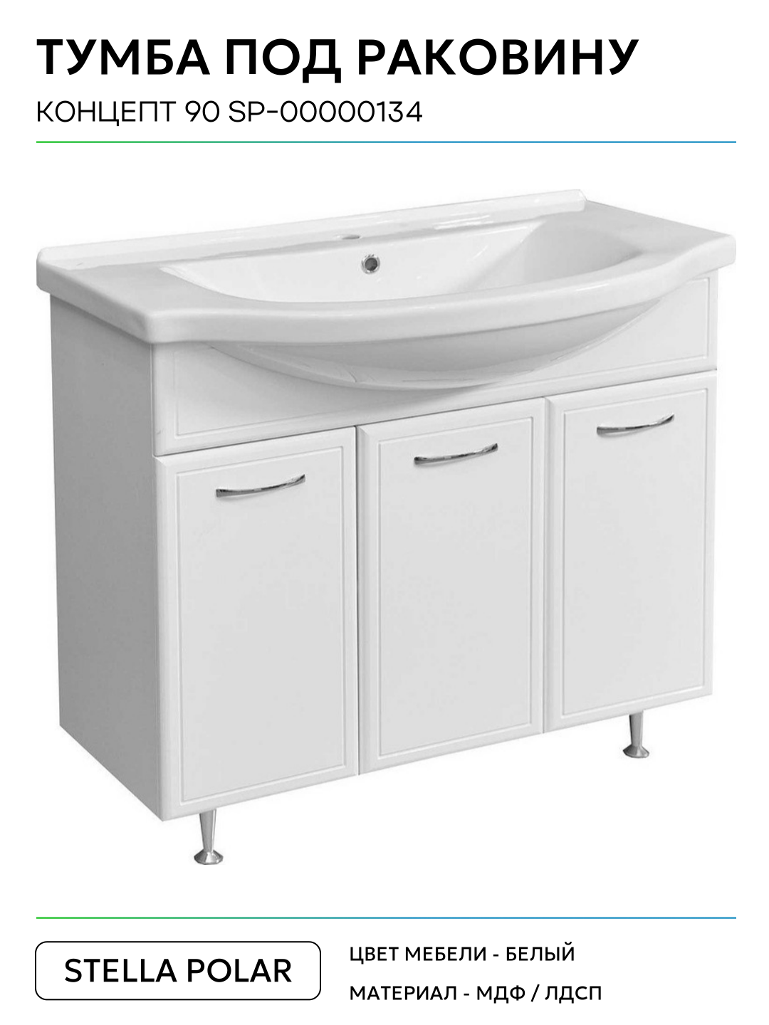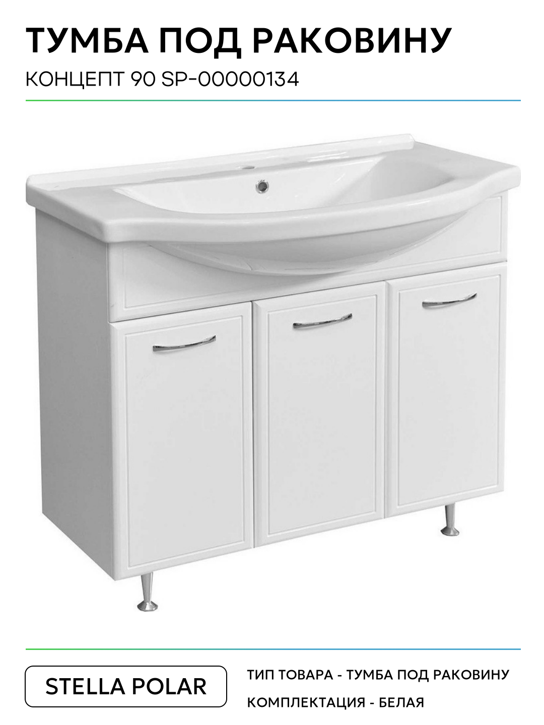 Купить Тумба под раковину Stella Polar Концепт 90 SP-00000134 Белая МДФ / ЛДСП белый с дверками с доставкой по всей России. Тумба под раковину Stella Polar Концепт 90 SP-00000134 Белая МДФ / ЛДСП белый с дверками: сравнение цен, характеристики, фото, актуальное наличие и цены.