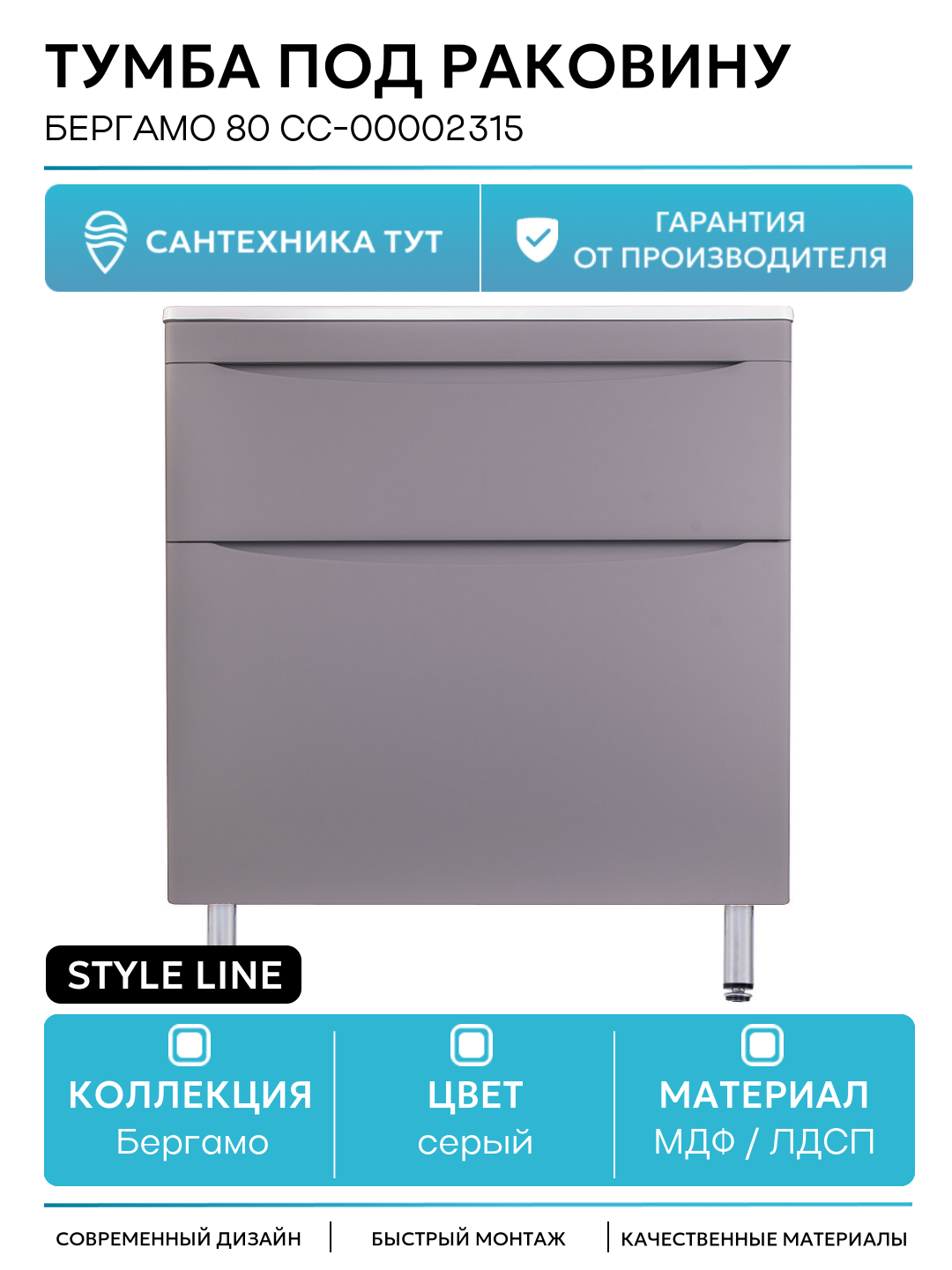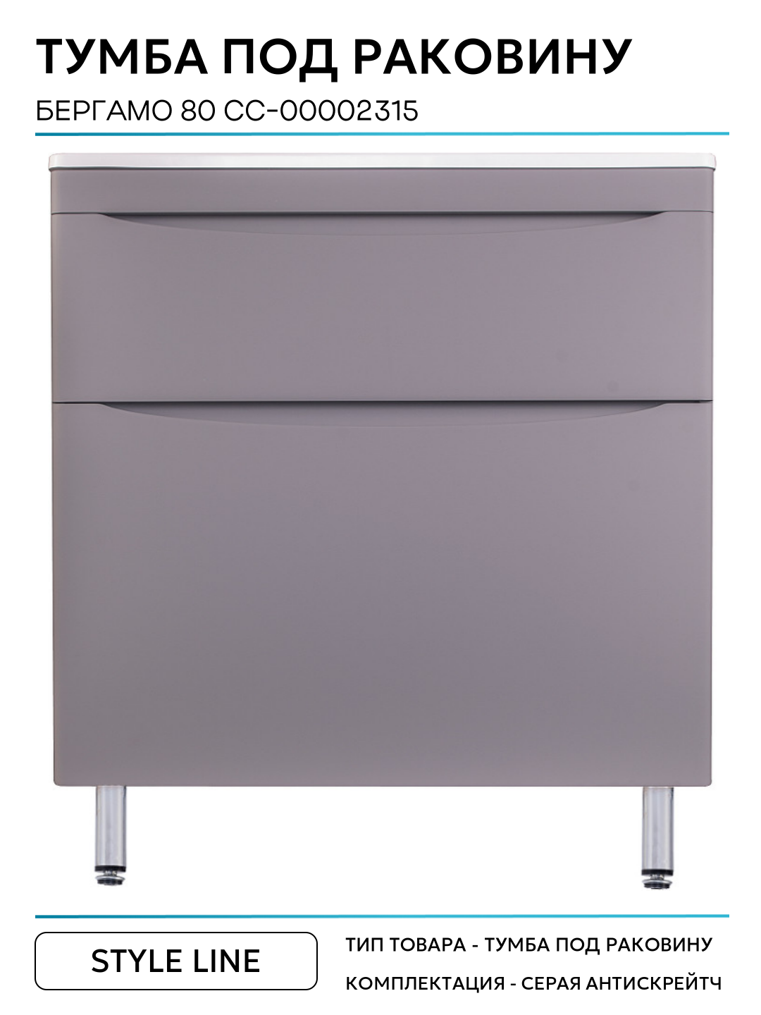 Тумба под раковину Style Line Бергамо 80 СС-00002315 Серая антискрейтч МДФ / ЛДСП серый с ящиками Россия: сравнение цен, характеристики, фото, актуальное наличие и цены.