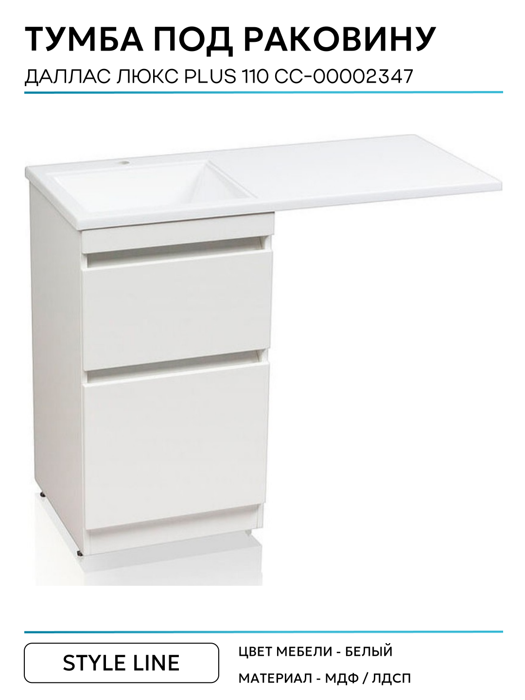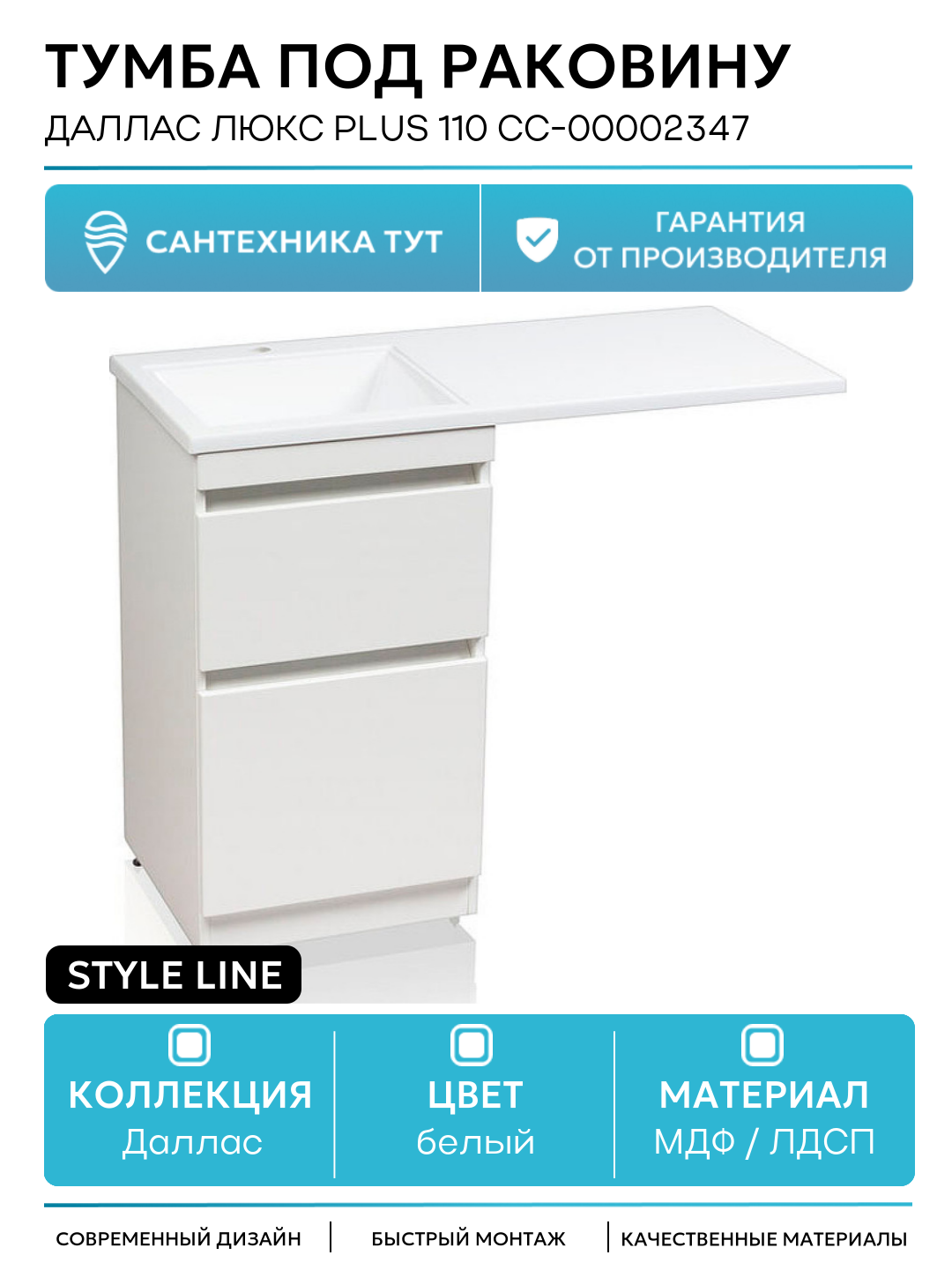 Тумба под раковину Style Line Даллас Люкс Plus 110 СС-00002347 Белая МДФ / ЛДСП белый с ящиками Россия: сравнение цен, характеристики, фото, актуальное наличие и цены.