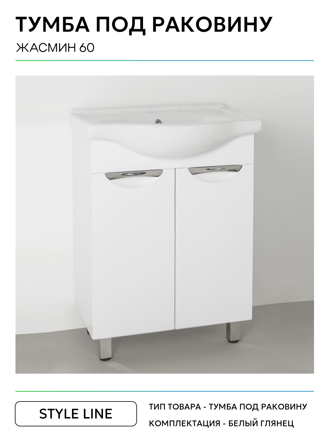 Тумба под раковину Style Line Жасмин 60 Белый глянец МДФ / ЛДСП белый с дверками
